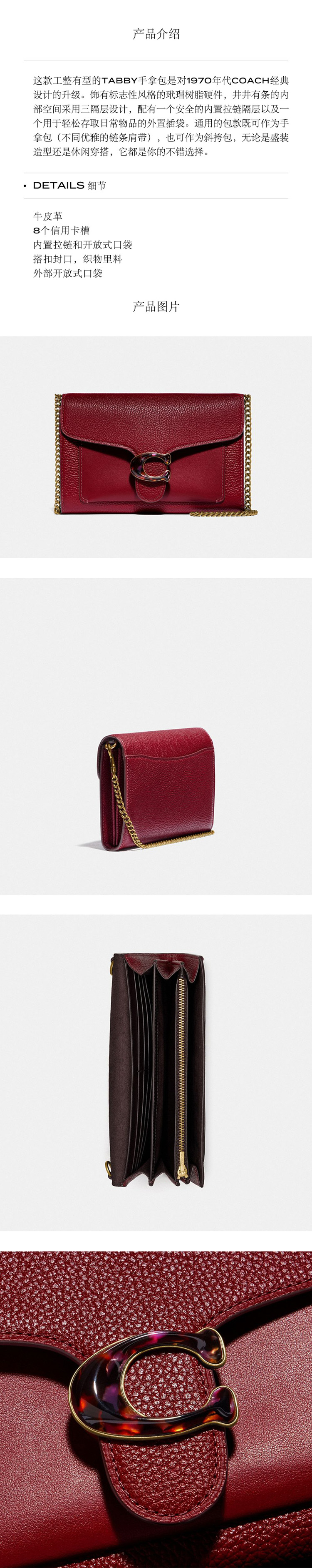 您所在的位置:首页 > 服饰箱包  > 潮流女包 > 单肩包  > 【美国直邮】COACH蔻驰专柜款女士复古TABBY链条手拿包酒神包潮流斜跨包78385 深红色