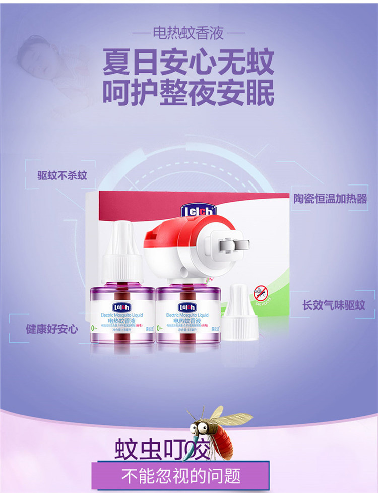 露安适(Lelch)蚊香液 驱蚊 电蚊香液 驱蚊器 儿童驱蚊液 婴儿防蚊液 灭蚊液 植物无蚊电热液 45ml*2