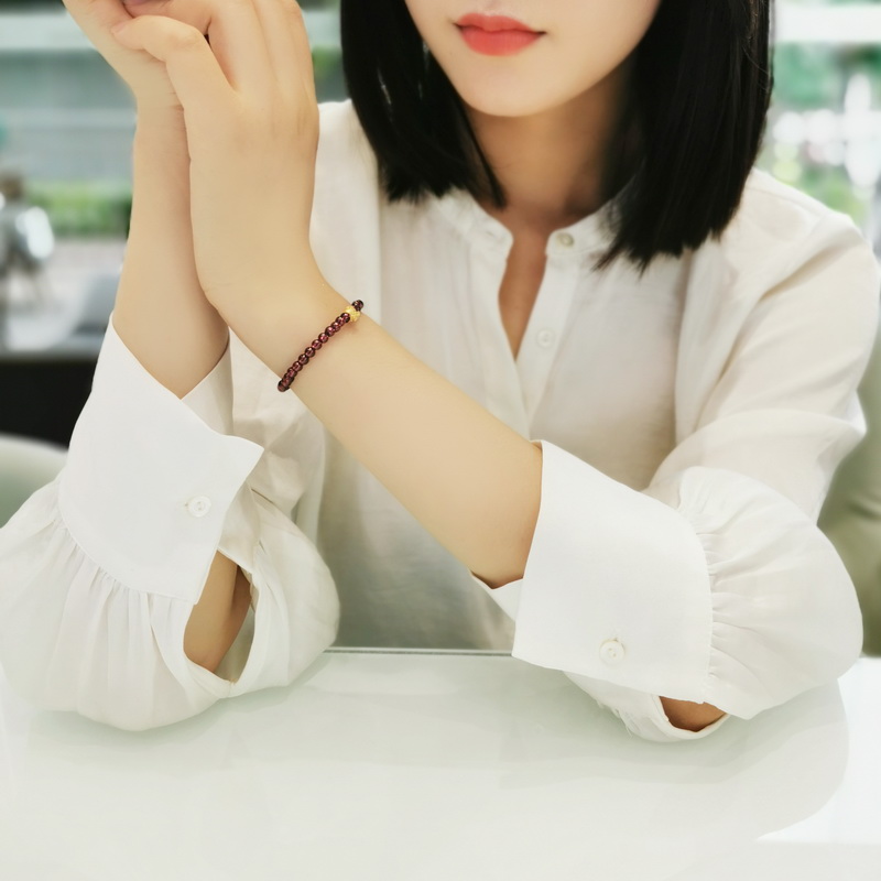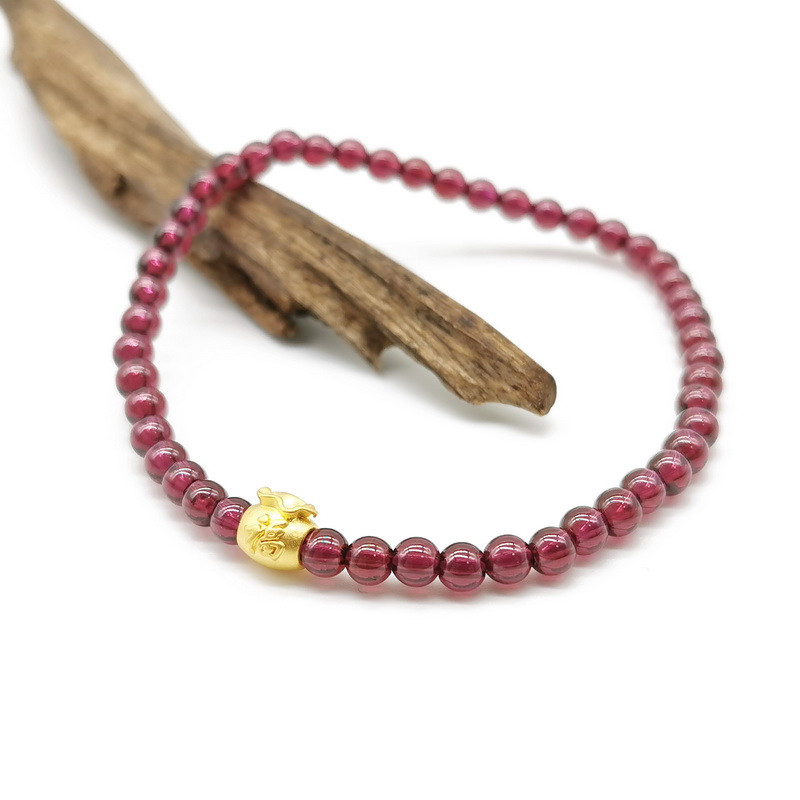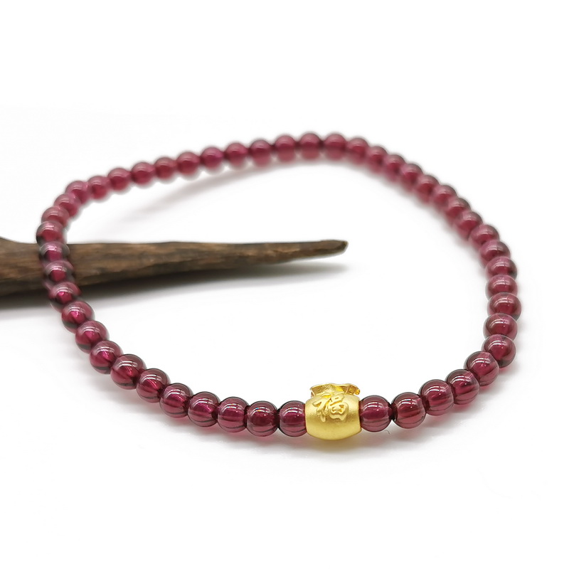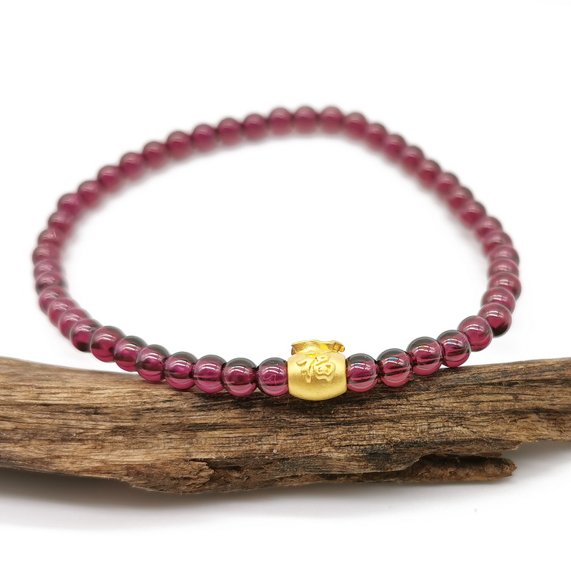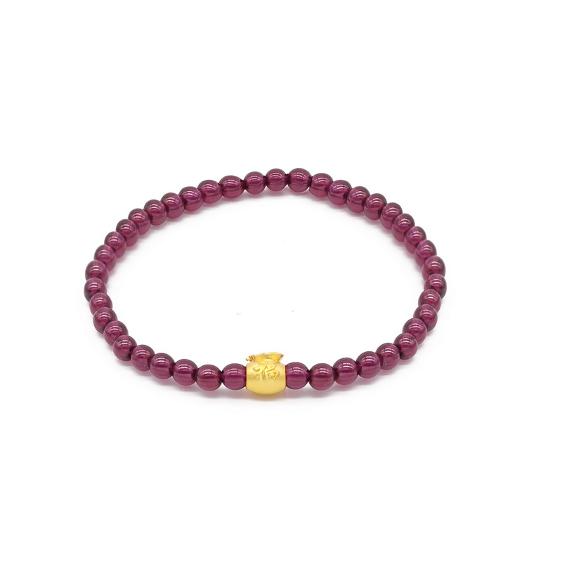 四福珠宝 足金小福袋紫牙乌石榴石手串