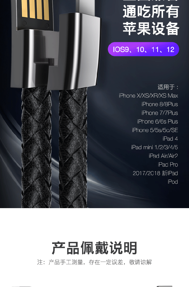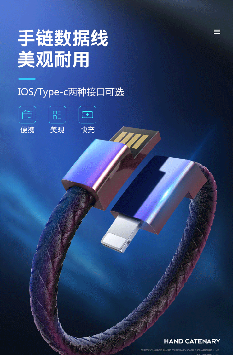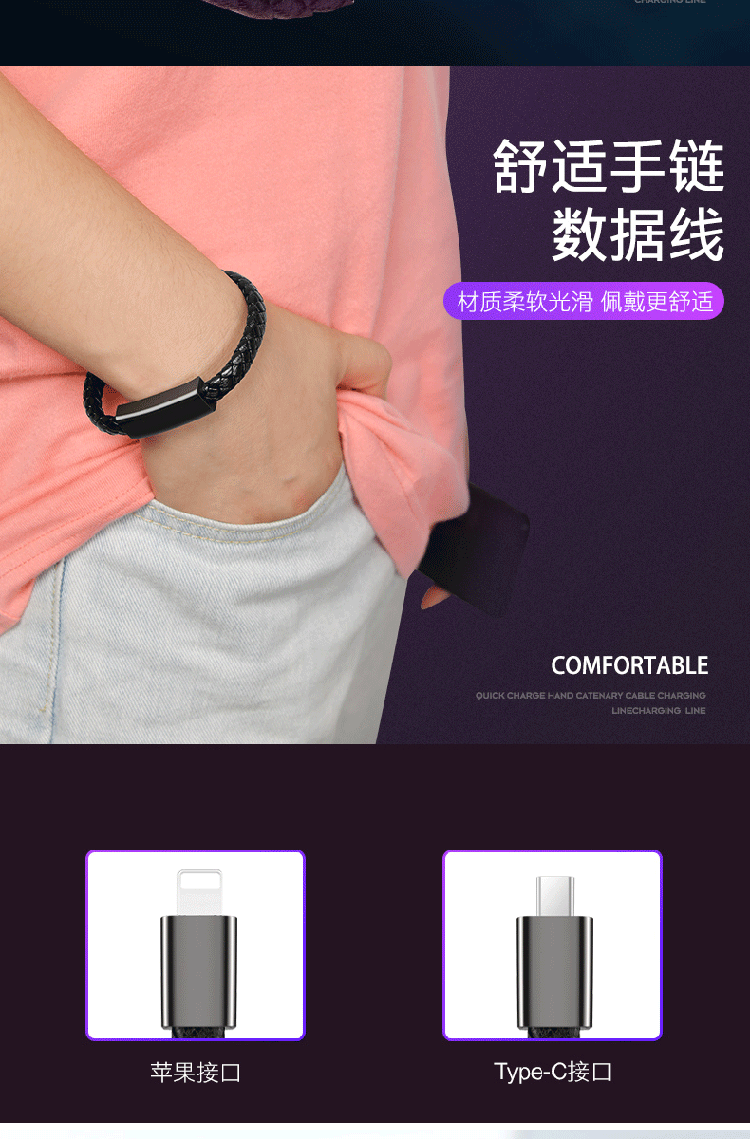 中国 颐电 手链手环便携数据线充电线 AD-3438 苹果接口 黑色