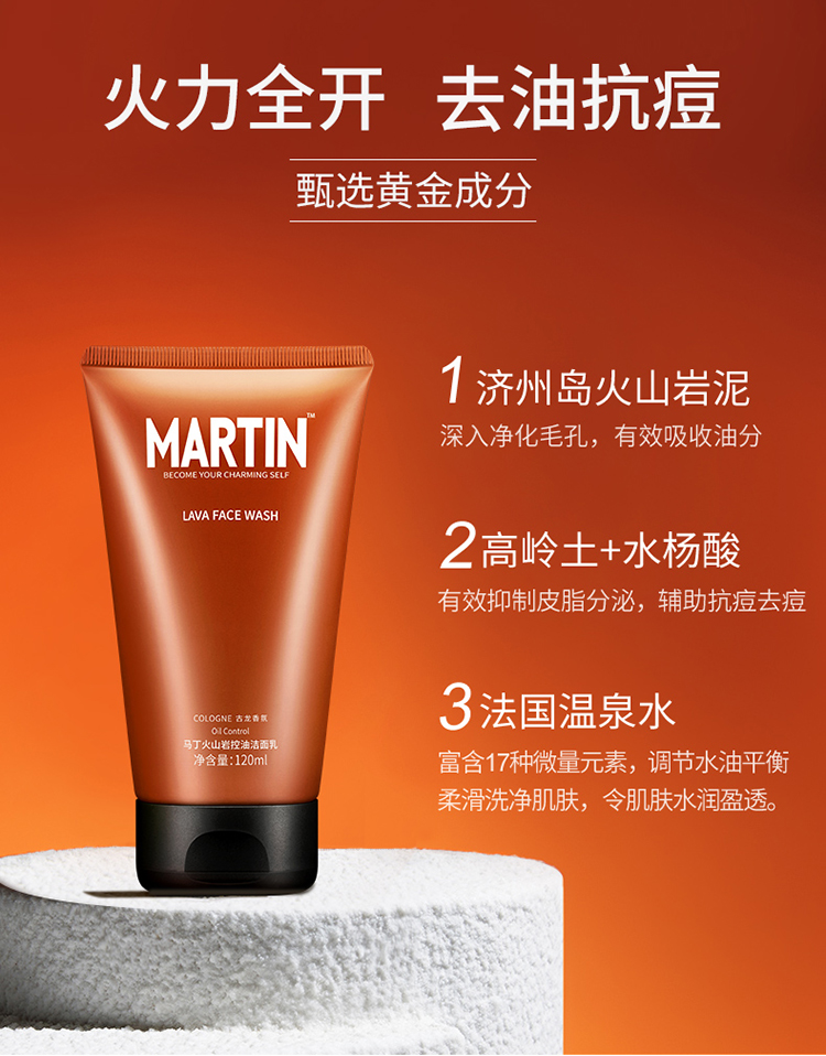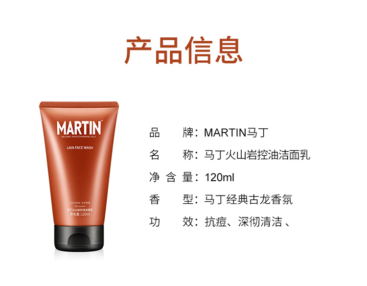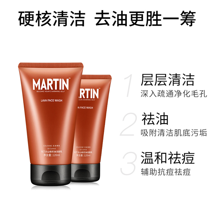 【清仓+买赠】男士专用马丁洗面奶古龙香氛火山岩洁面乳竹炭控油祛痘补水 120ml