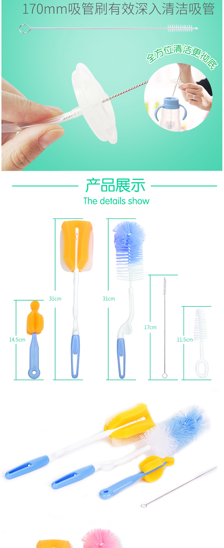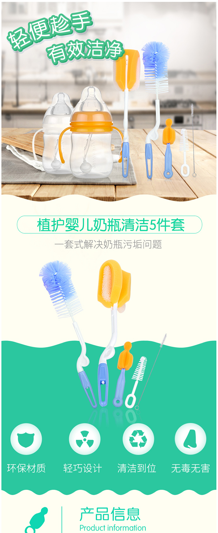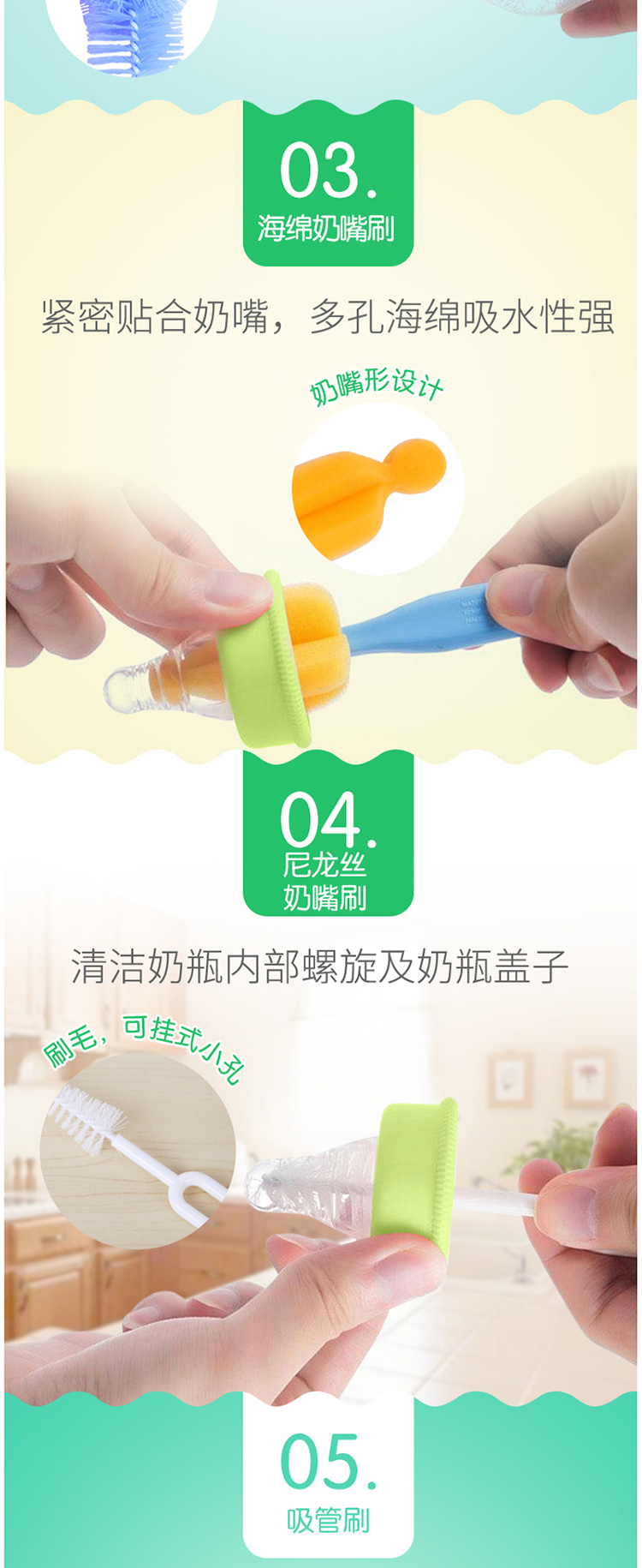 金婴奶瓶5件套刷海绵刷尼龙刷奶瓶刷奶嘴刷吸管刷