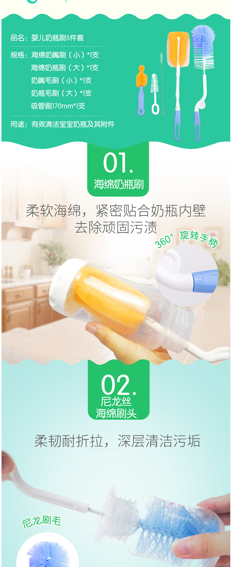 您所在的位置:首页 > 母婴用品  > 母婴用品 > 喂养用品  > 金婴奶瓶5件套刷海绵刷尼龙刷奶瓶刷奶嘴刷吸管刷