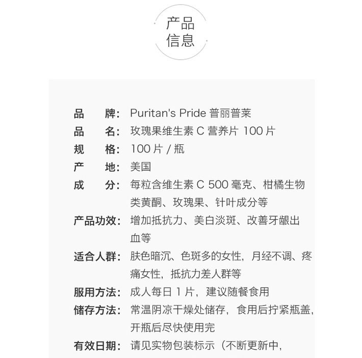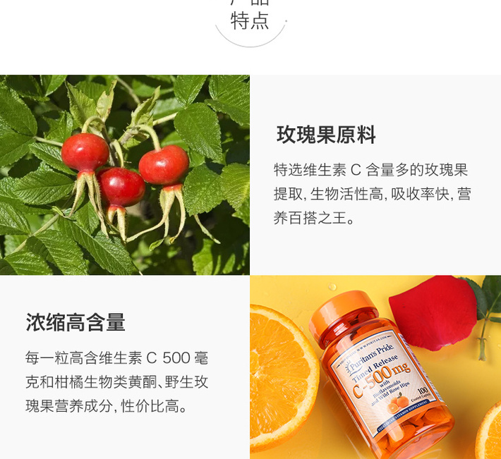 普丽普莱 维生素C玫瑰果维C营养片 100片