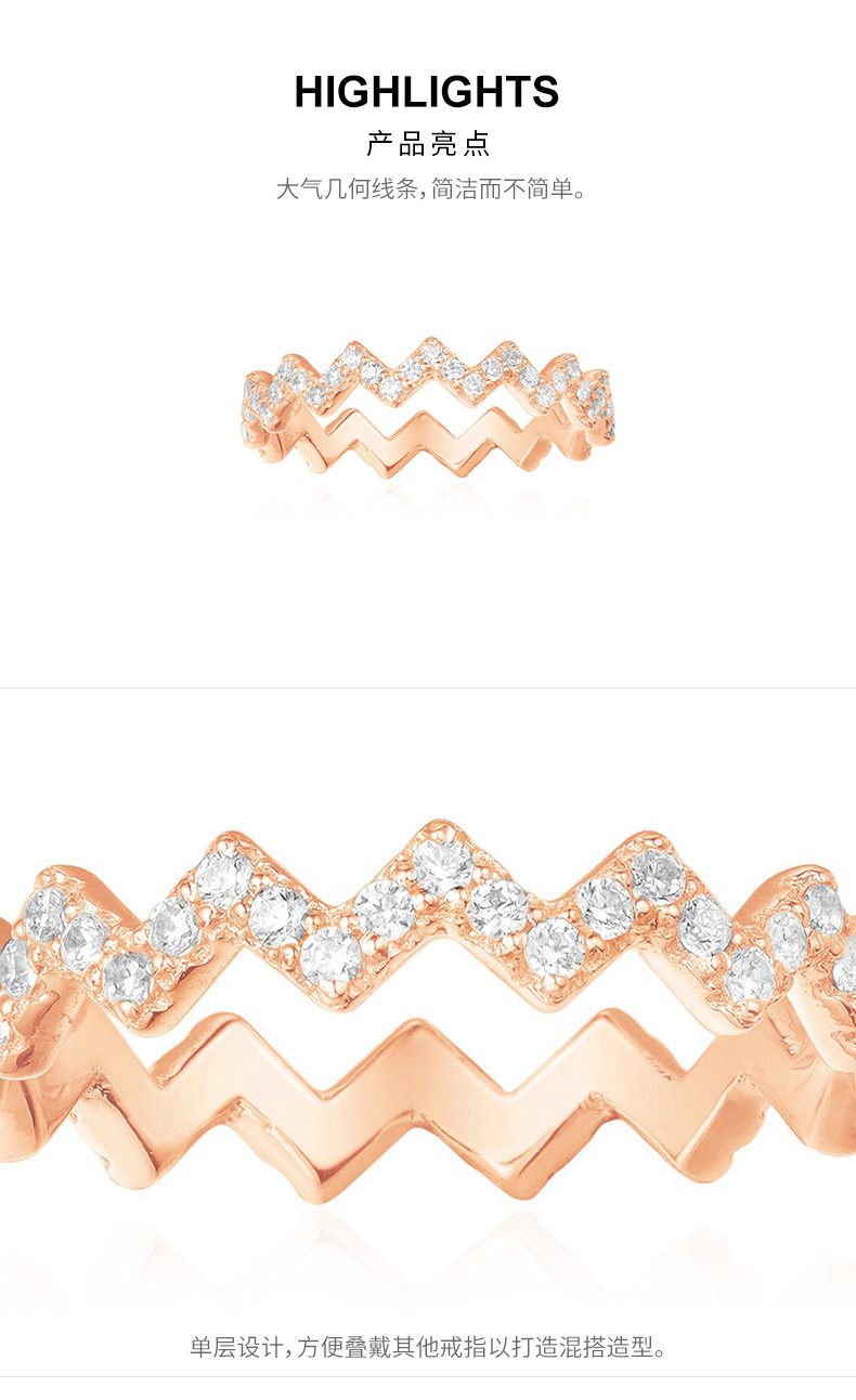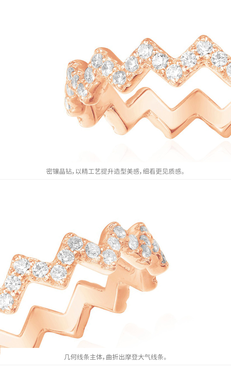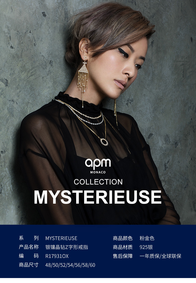 APM Monaco粉金色银Z字形戒指女 情侣食指戒轻奢关节戒情人节礼物 R17931OX (下单备注尺码)