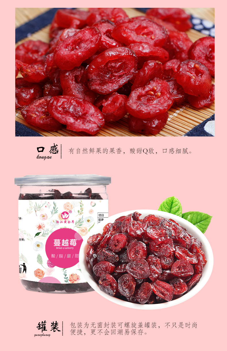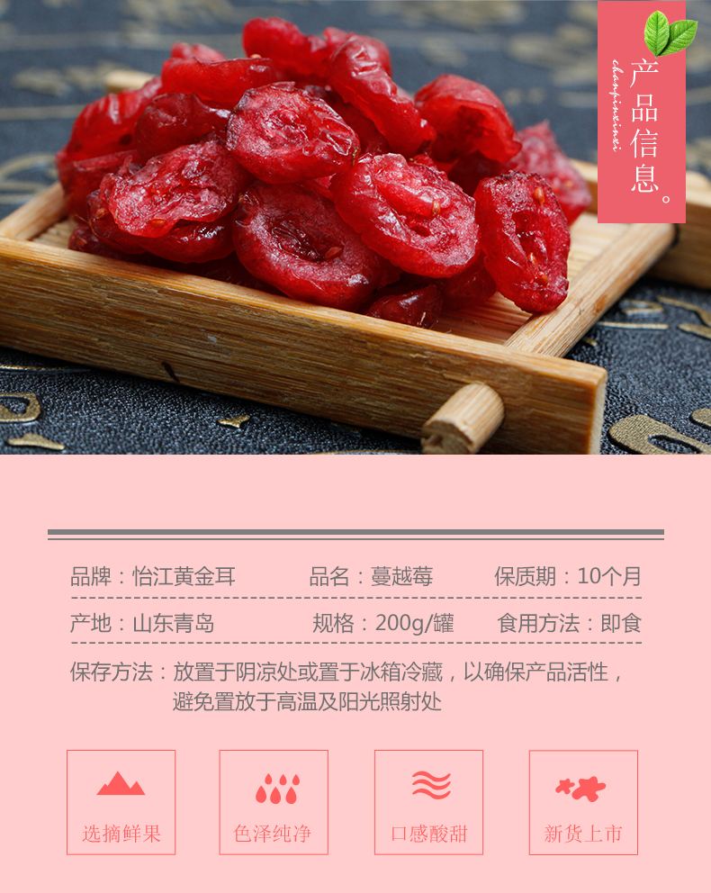 怡江黄金耳 整粒蔓越莓干罐装200g 网红零食 酸酸甜甜