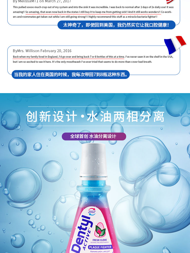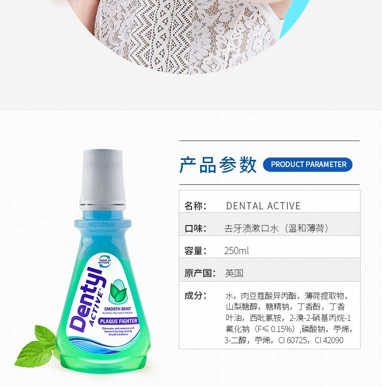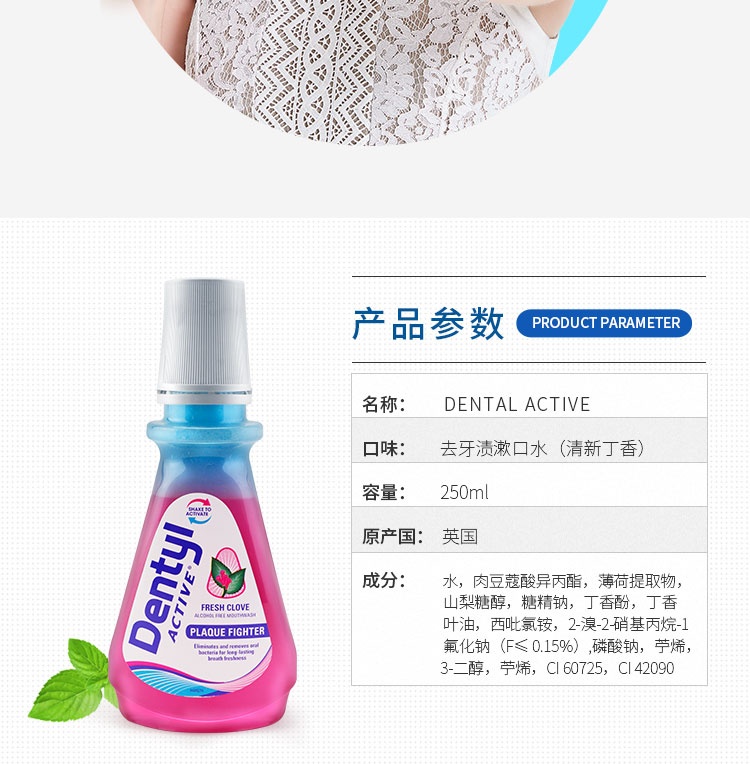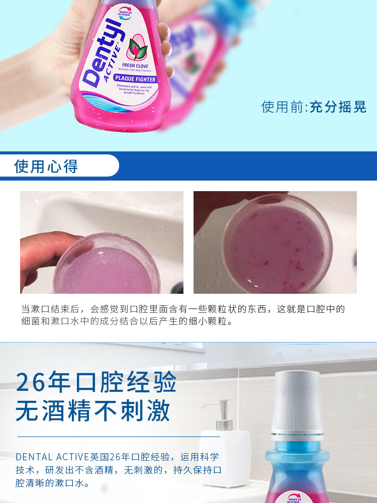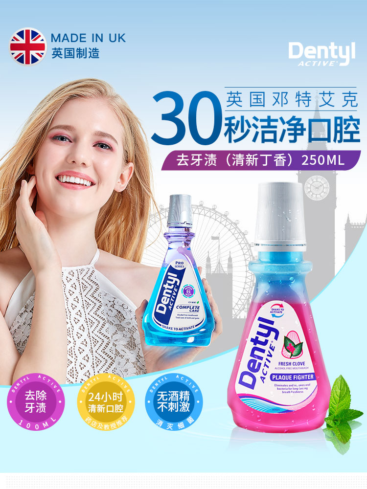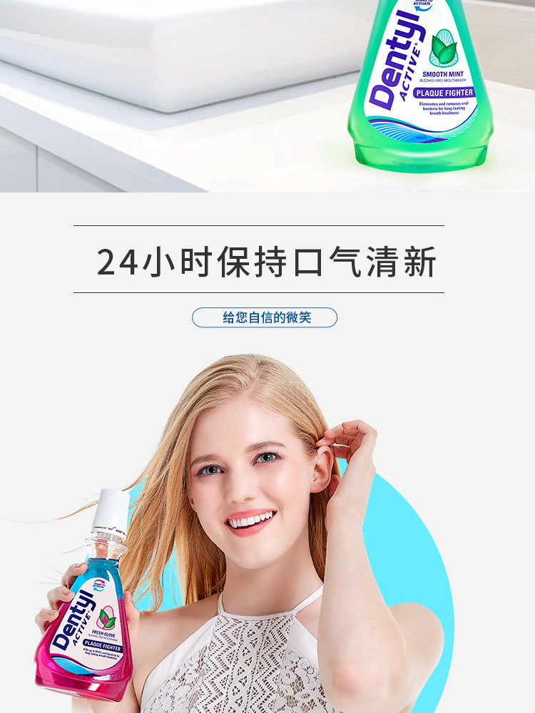 邓特艾克(Dentyl Active)星空漱口水 英国进口 清新口气孕妇儿童可用漱口液250ml两瓶 丁香+薄荷