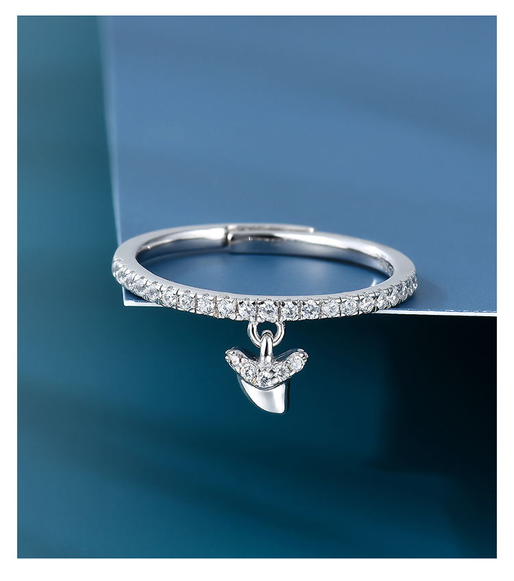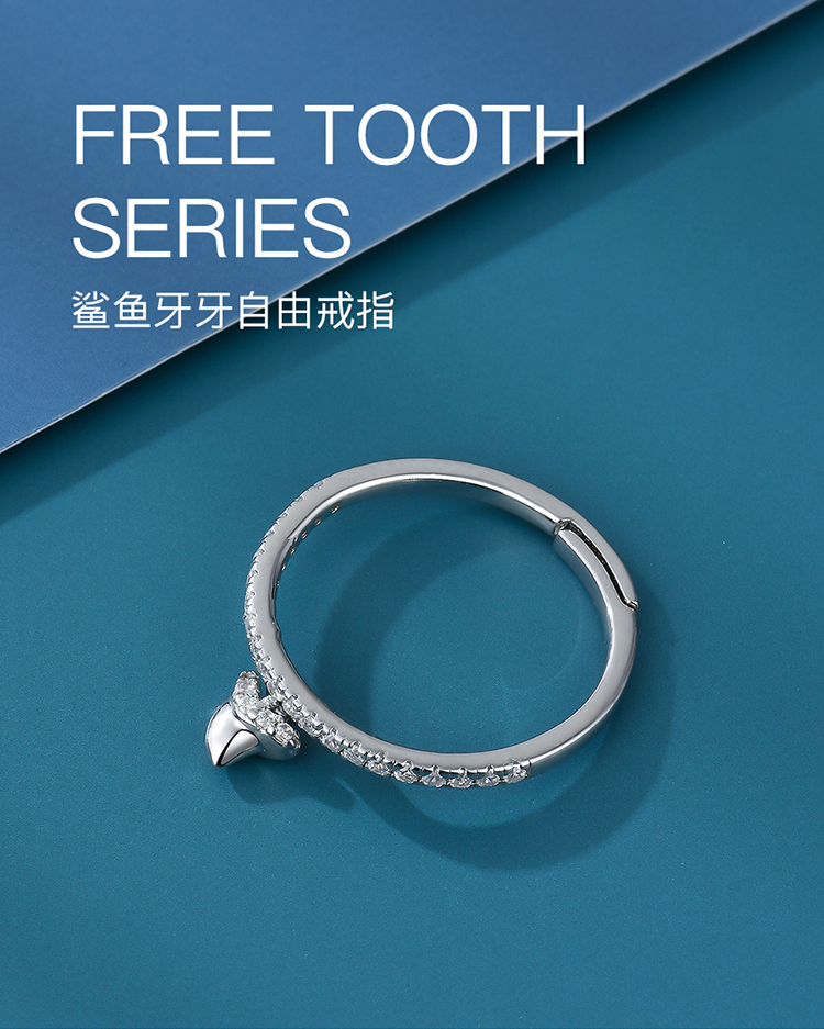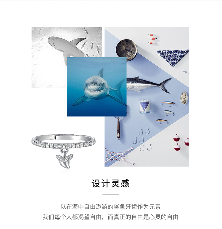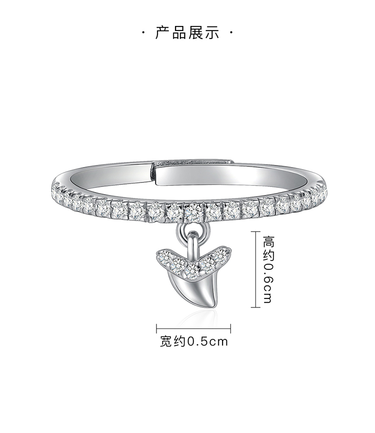 SHARKBABY鲨鱼甜心 原创设计鲨鱼牙925银戒指女可调节指环潮人个性食指戒子