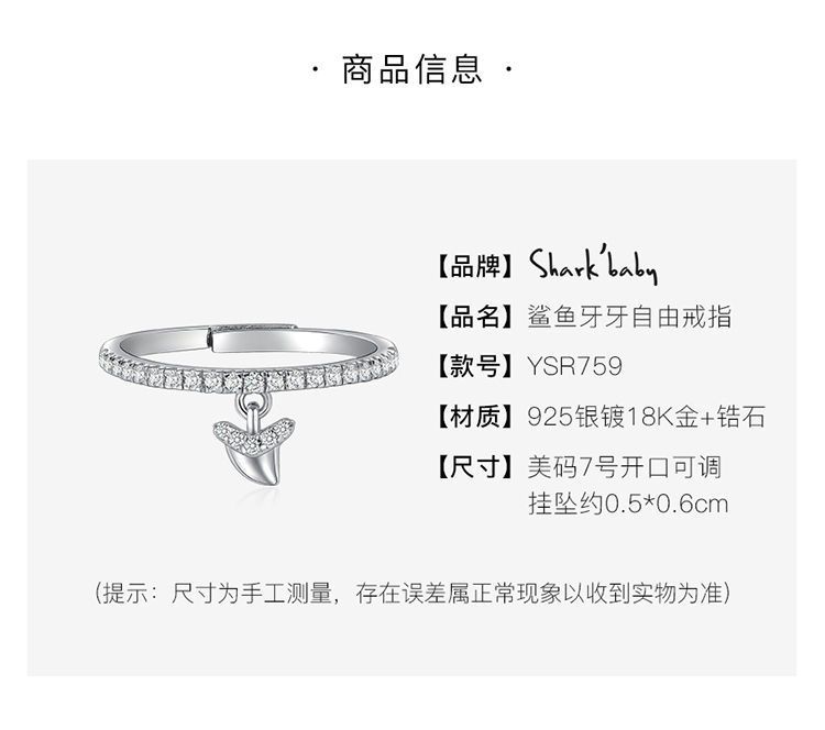 您所在的位置:首页 > 珠宝首饰  > 时尚饰品 > 戒指  > SHARKBABY鲨鱼甜心 原创设计鲨鱼牙925银戒指女可调节指环潮人个性食指戒子