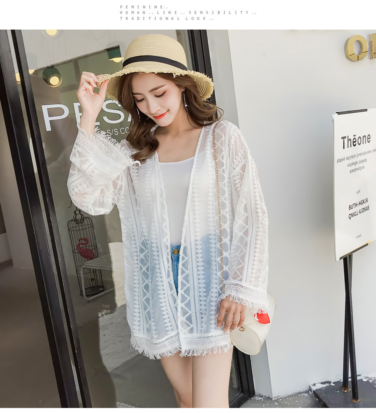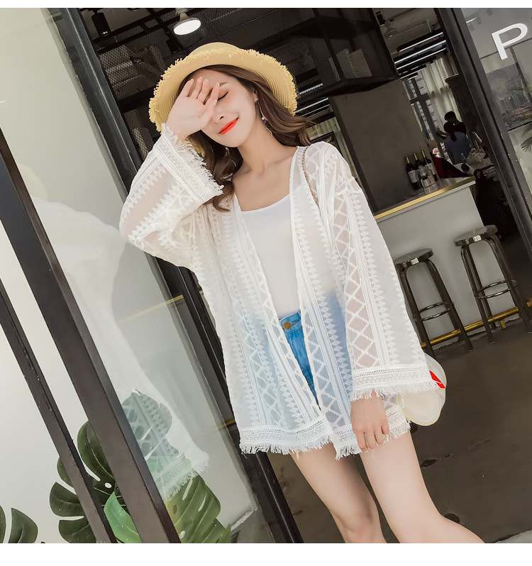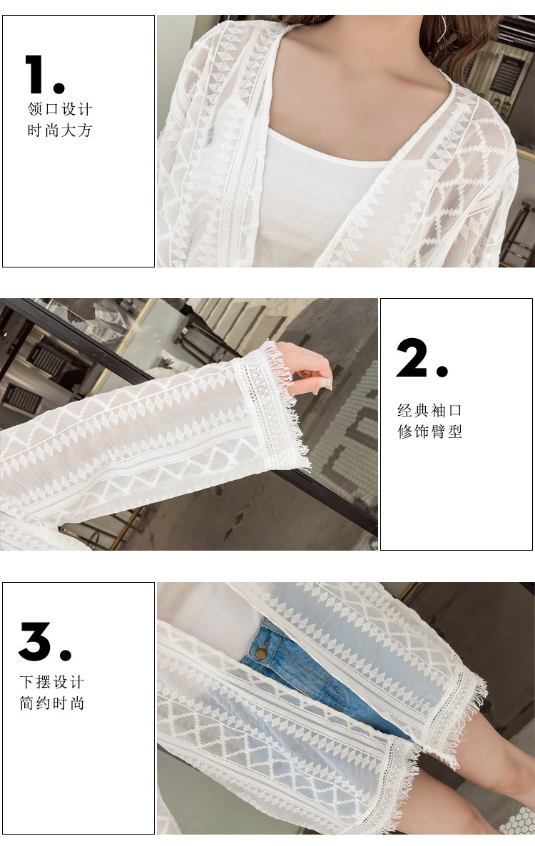 您所在的位置:首页 > 服饰内衣  > 女装 > 短外套  > 夏季海边沙滩防晒衣女披肩中长款薄蕾丝开衫J1015