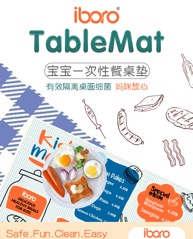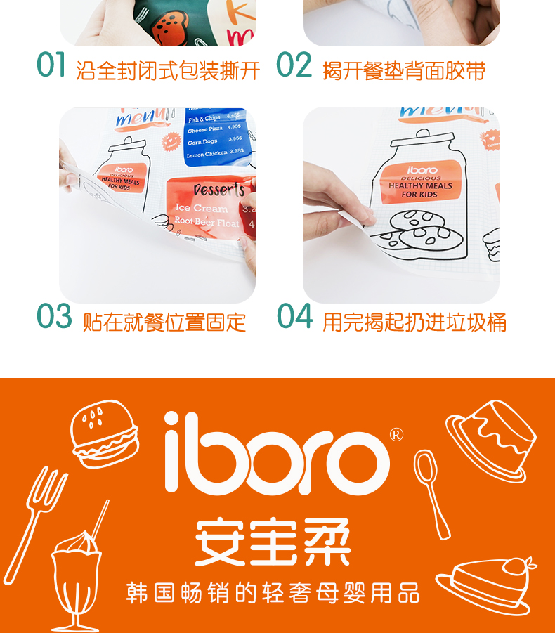 韩国安宝柔(iboro) 一次性无菌餐桌垫(新版19款)18片/包