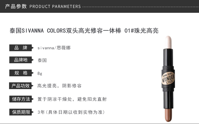 泰国 sivanna光影双头遮瑕修容棒 01#香槟高光