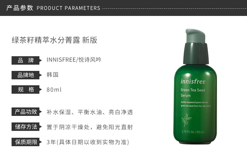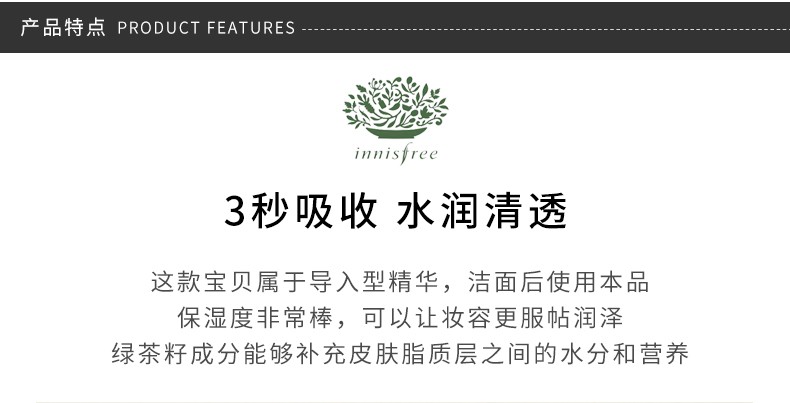 您所在的位置:首页 > 美妆护肤  > 面部护肤 > 面部精华  > 【香港直邮】INNISFREE/悦诗风吟 绿茶籽精萃水分菁露 80ML