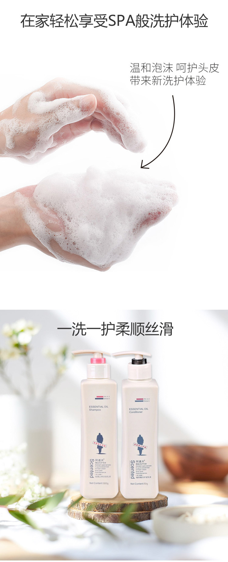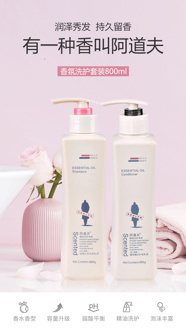 阿道夫洗发水洗发精油护发组合氛洗护800ml 2瓶套装 滋润修护洗发乳+植萃精华护发乳 赠送10ml小样*6袋