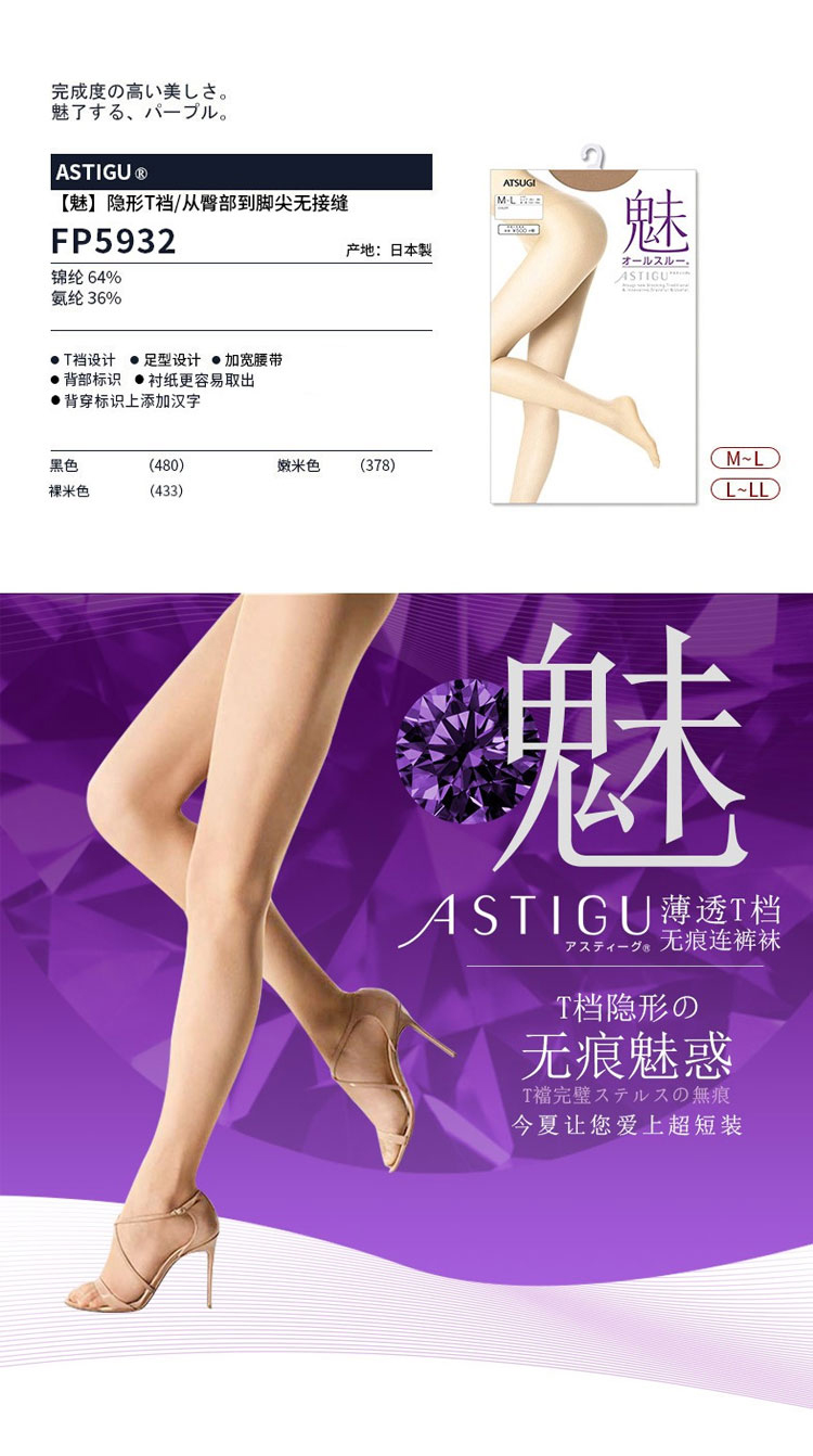 日本厚木 秋夏薄款丝袜裸米色(433)L-LL 适合身高155-170