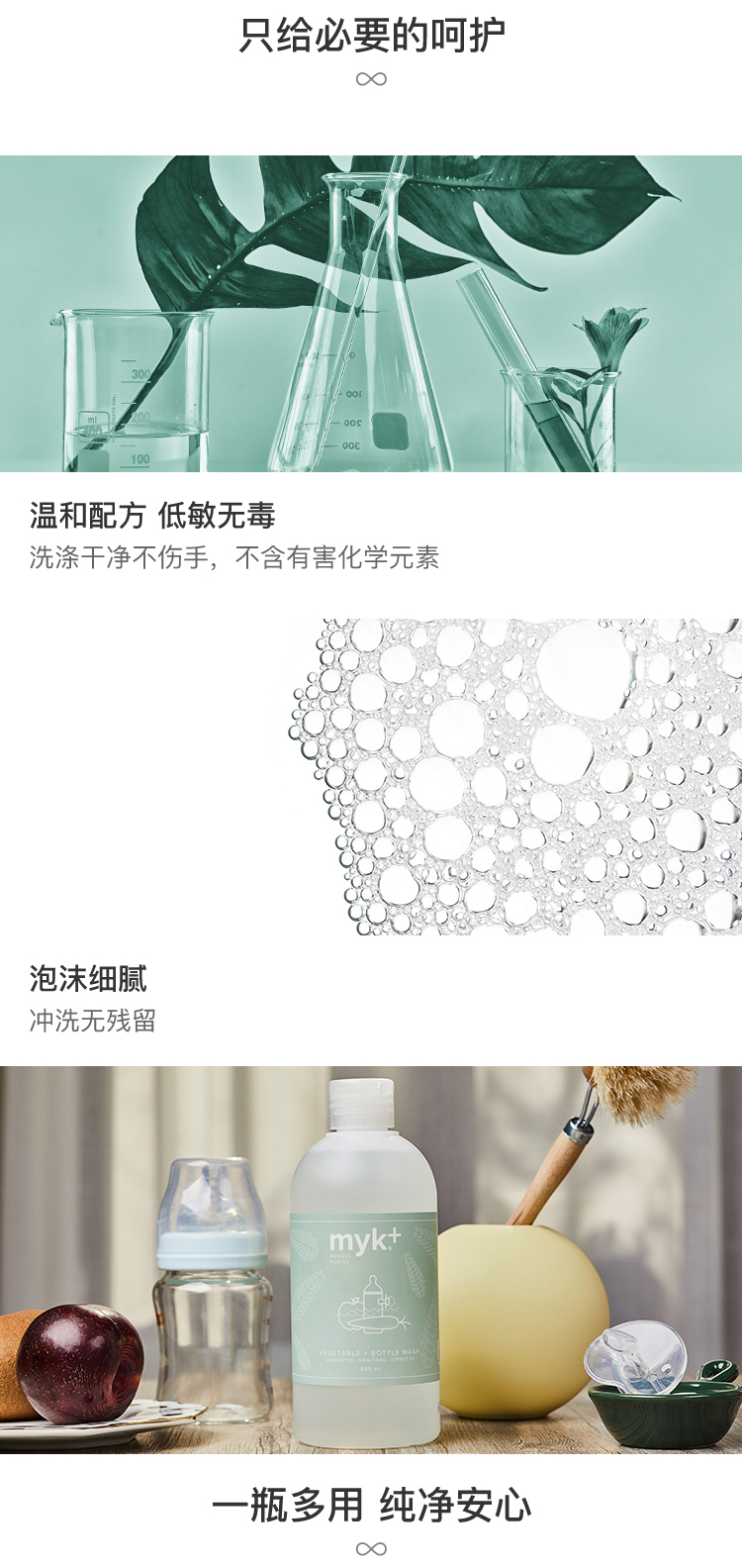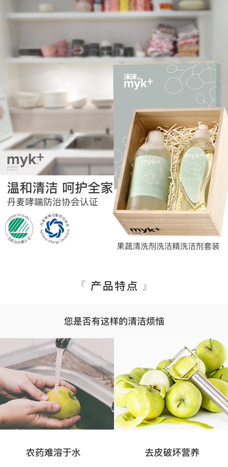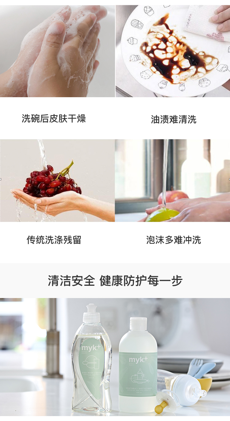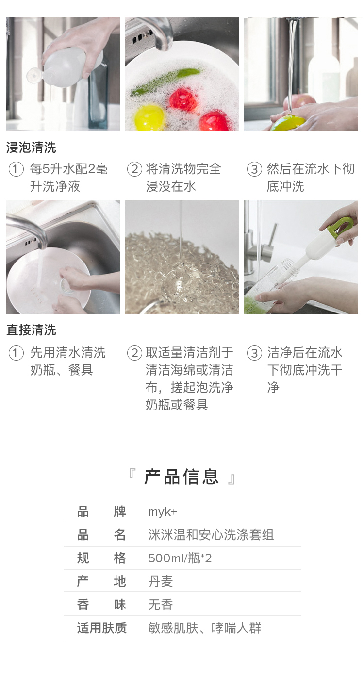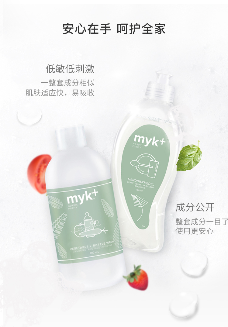 洣洣myk+温和安心洗涤两件套(myk+蔬果儿童餐具洗净液500ml+myk+温和高效洗碗精500ml)