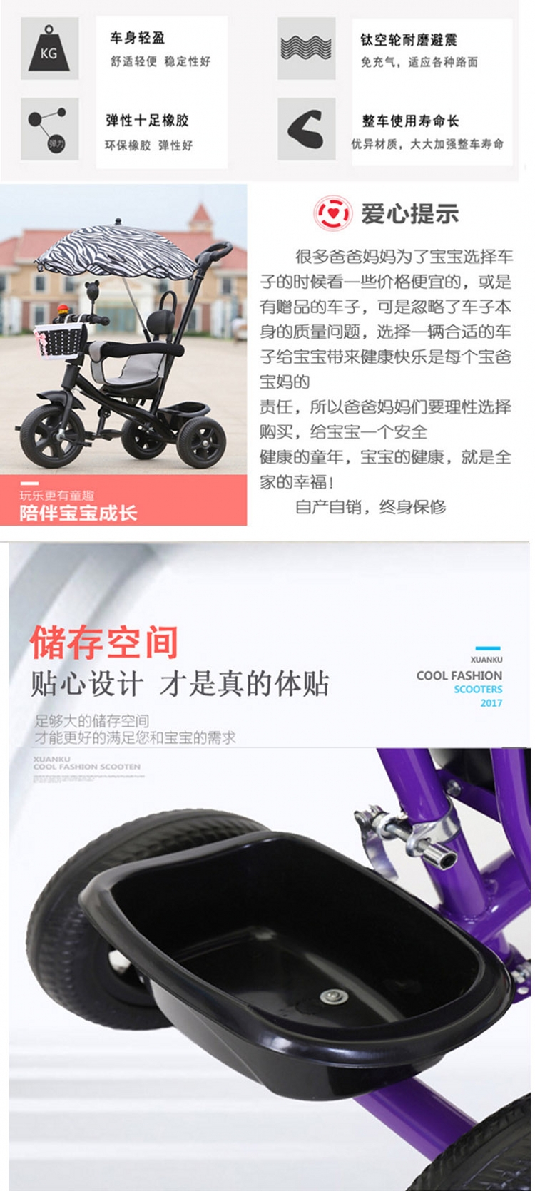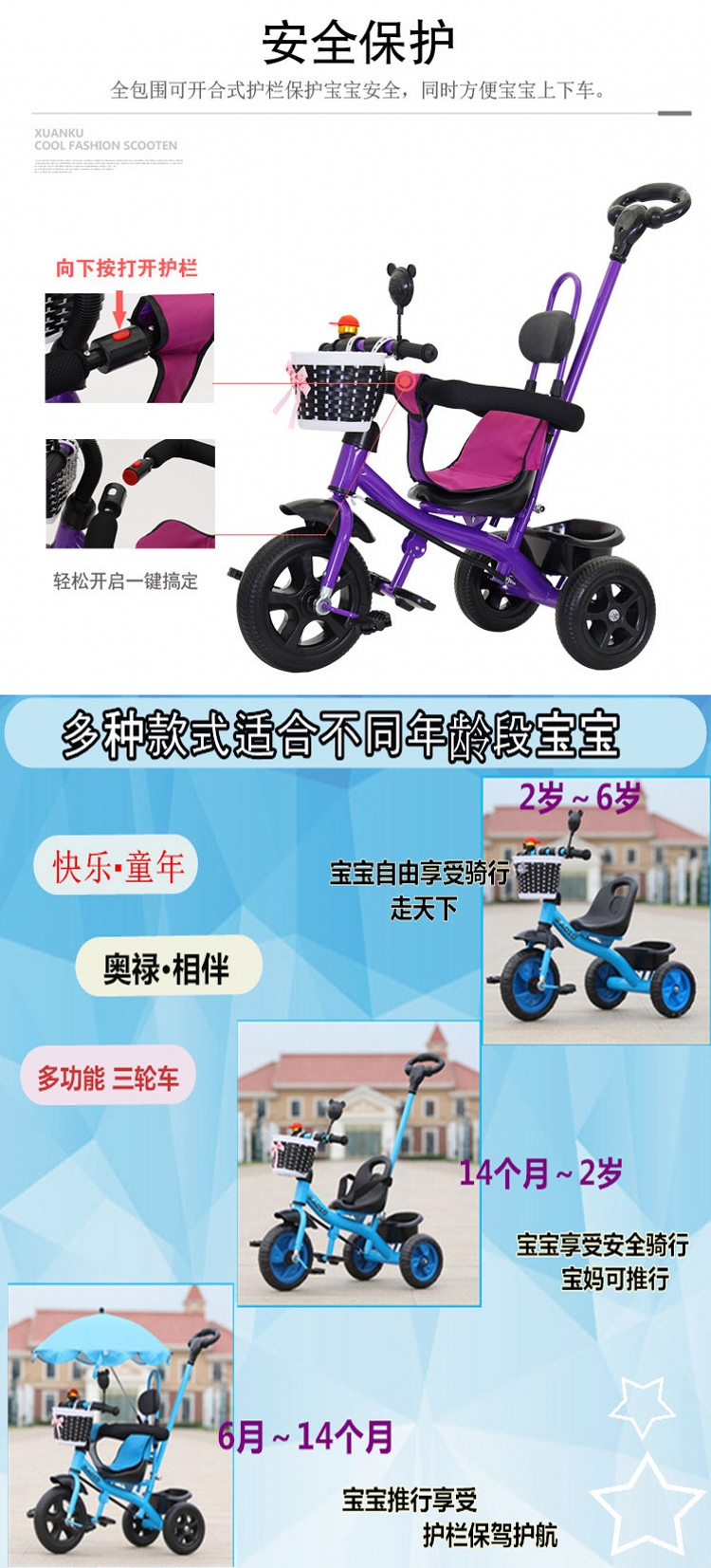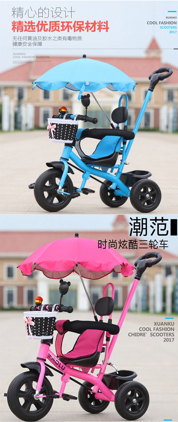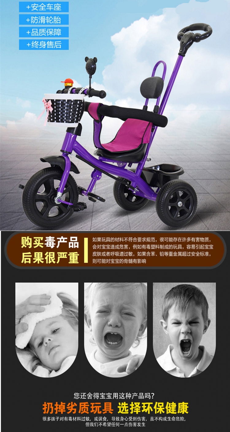 妈妈宝贝MOMMY BABY儿童三轮脚踏车发泡轮款 2-4岁脚踏车 婴儿宝宝手推三轮车