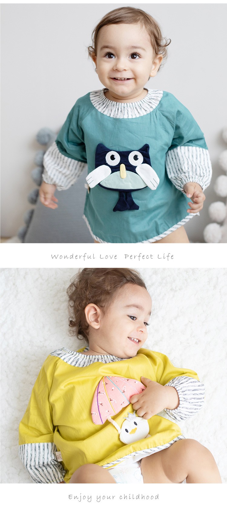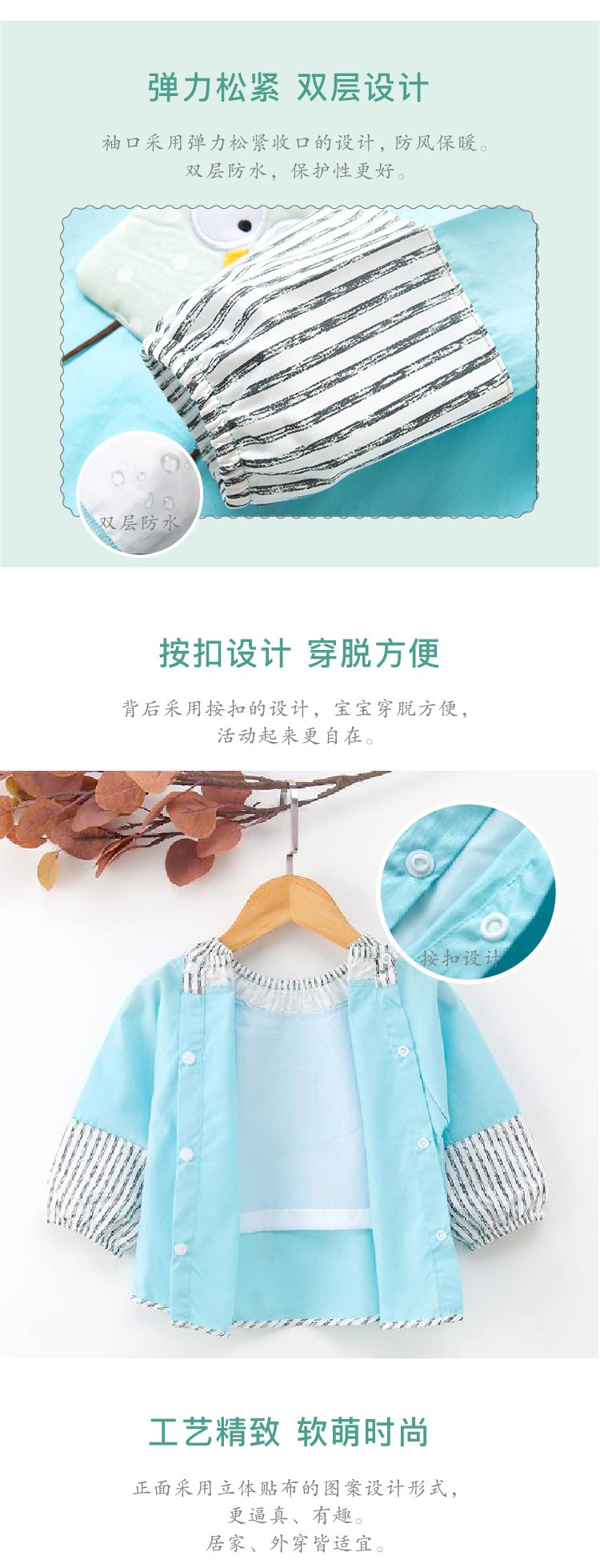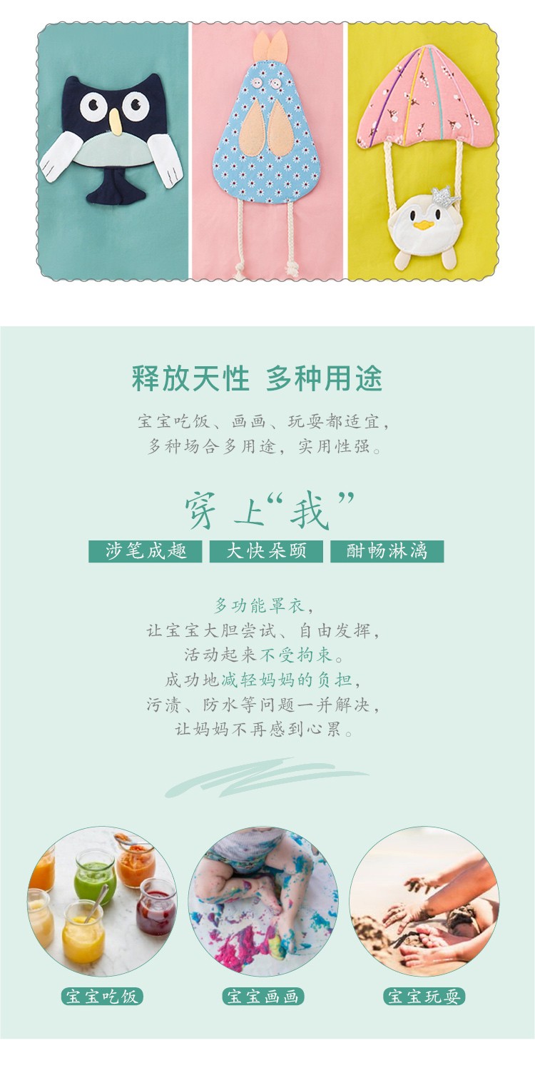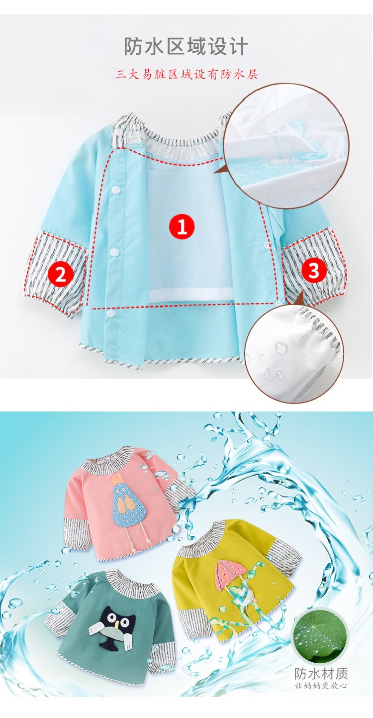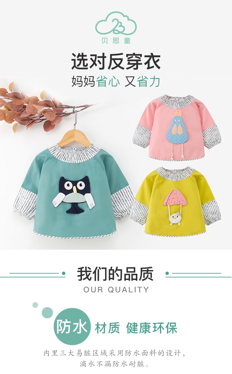 贝思童纯棉立体卡通防水罩衣 儿童喂饭长袖衣服反穿衣饭兜 混发