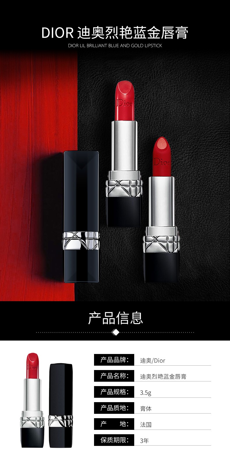 您所在的位置:首页 > 美妆护肤  > 香水彩妆 > 口红  > 【香港直邮】Dior/迪奥 全新烈艳蓝金唇膏 丝绒哑光999 3.5g 礼盒套装