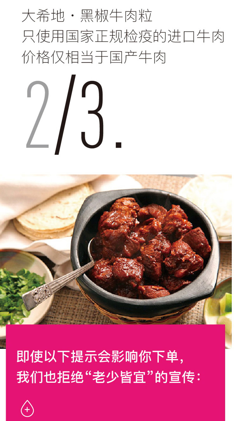 您所在的位置:首页 > 休闲食品  > 休闲食品 > 乳品冷饮  > 大希地撒娇黑椒牛肉粒238g*4袋赠酱包4包