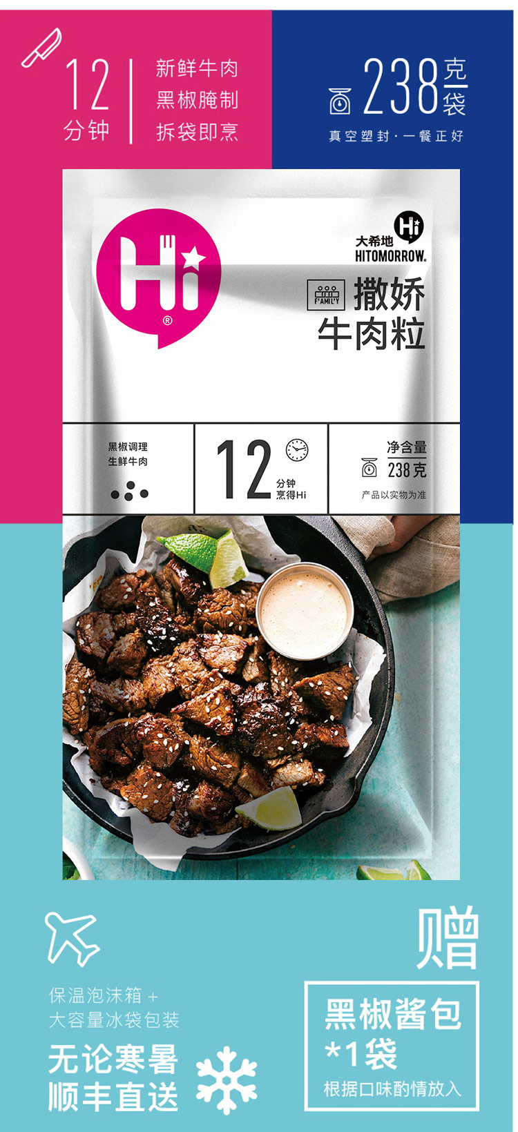 大希地撒娇黑椒牛肉粒238g*4袋赠酱包4包