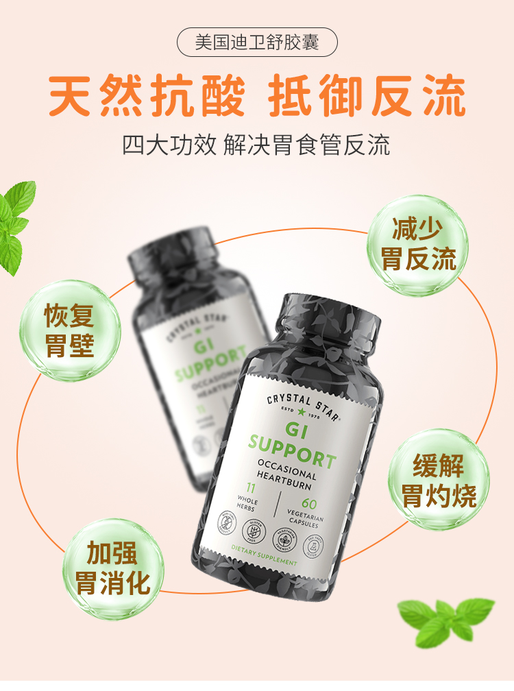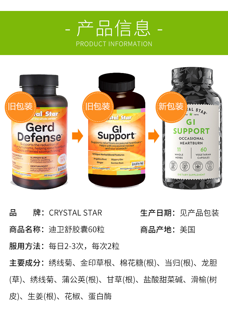 Crystal Star温和养胃迪卫舒胶囊60粒 版本随机发【美国直邮】