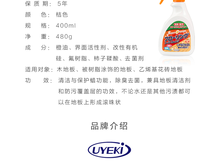日本原产UYEKI地板地砖瓷砖深层去污清洁剂(防滑型) 400ml