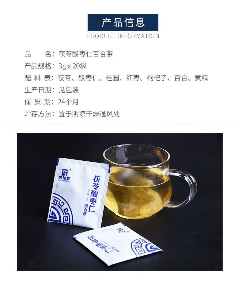 万松堂 茯苓酸枣仁茶/助眠安神茶3克*20袋/盒
