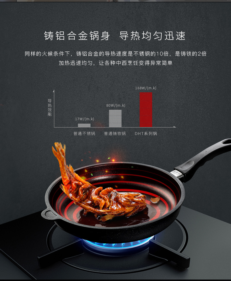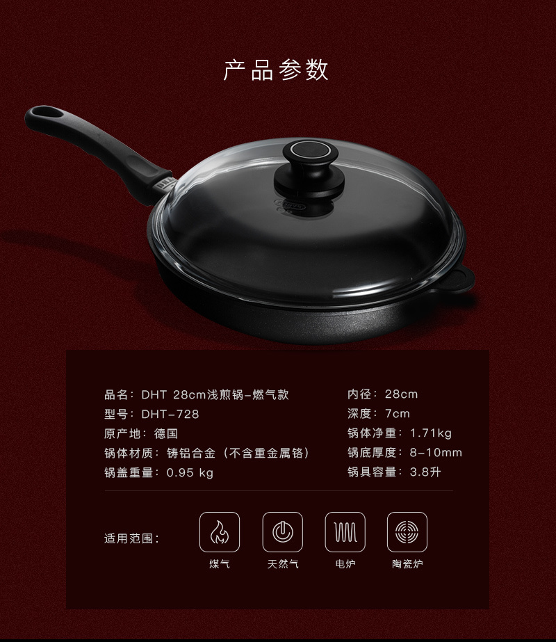【授权商品】德国原产DHT重型铸铝合金Lotan涂层煎炒多用不粘锅28cm送锅盖