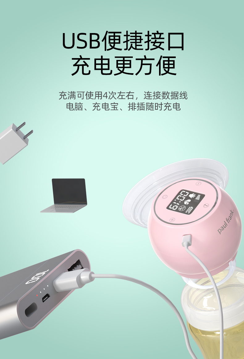 Paul Frank大嘴猴一体式全电动吸奶器自动孕产妇产后专用正品静音无痛-白色ppsu