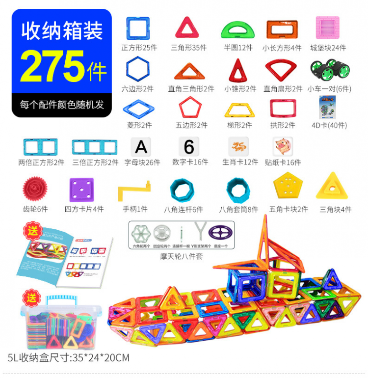 怡高达磁力片积木套装百变提拉磁性拼搭片批发儿童益智玩具纯磁力片【275件装】