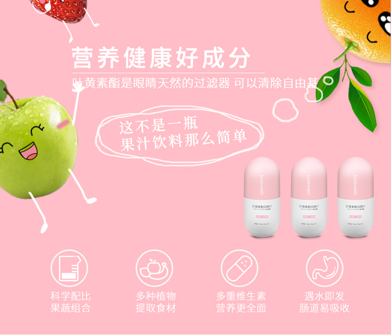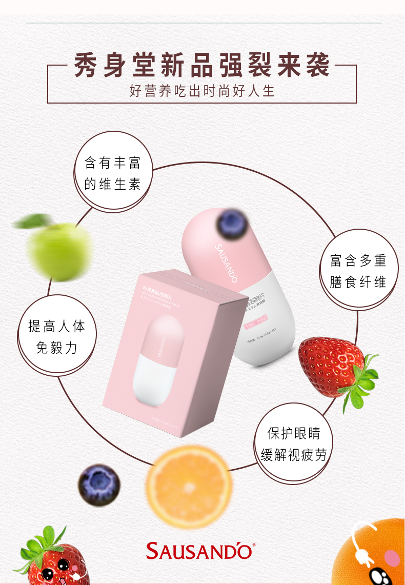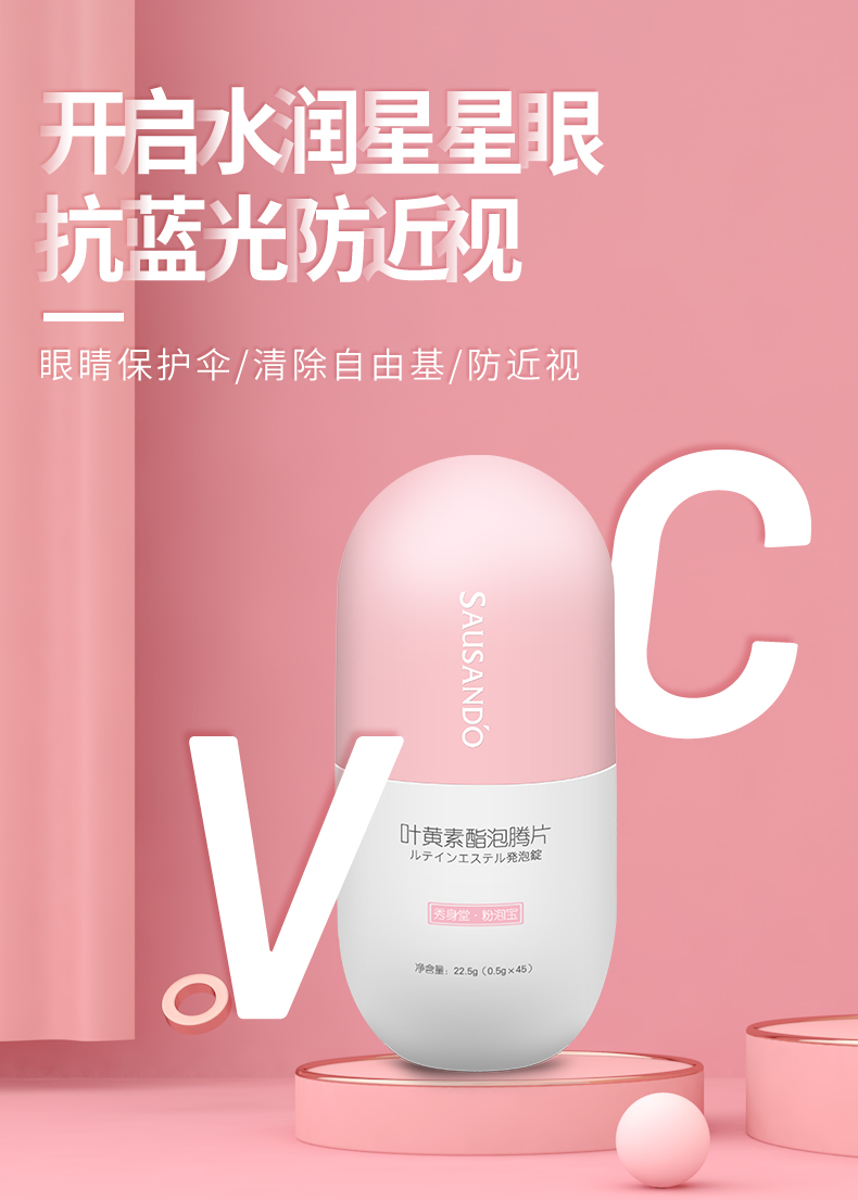 秀身堂叶黄素左旋肉碱泡腾片(粉泡宝)45粒装