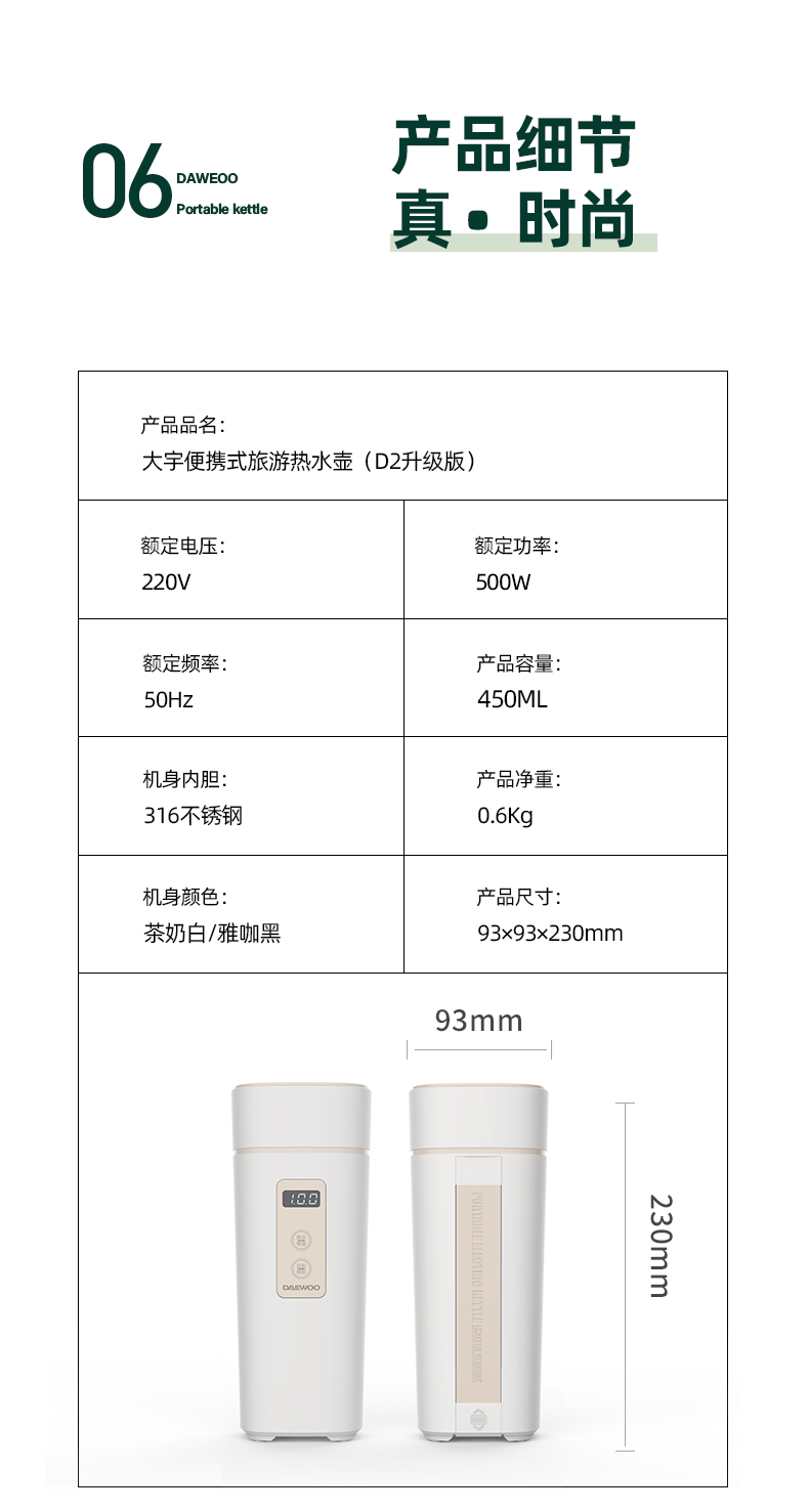 您所在的位置:首页 > 家用电器  > 厨房小电 > 电水壶/热水瓶  > 大宇便携烧水保温壶升级款D2-雅咖黑(316升级内胆,1L)