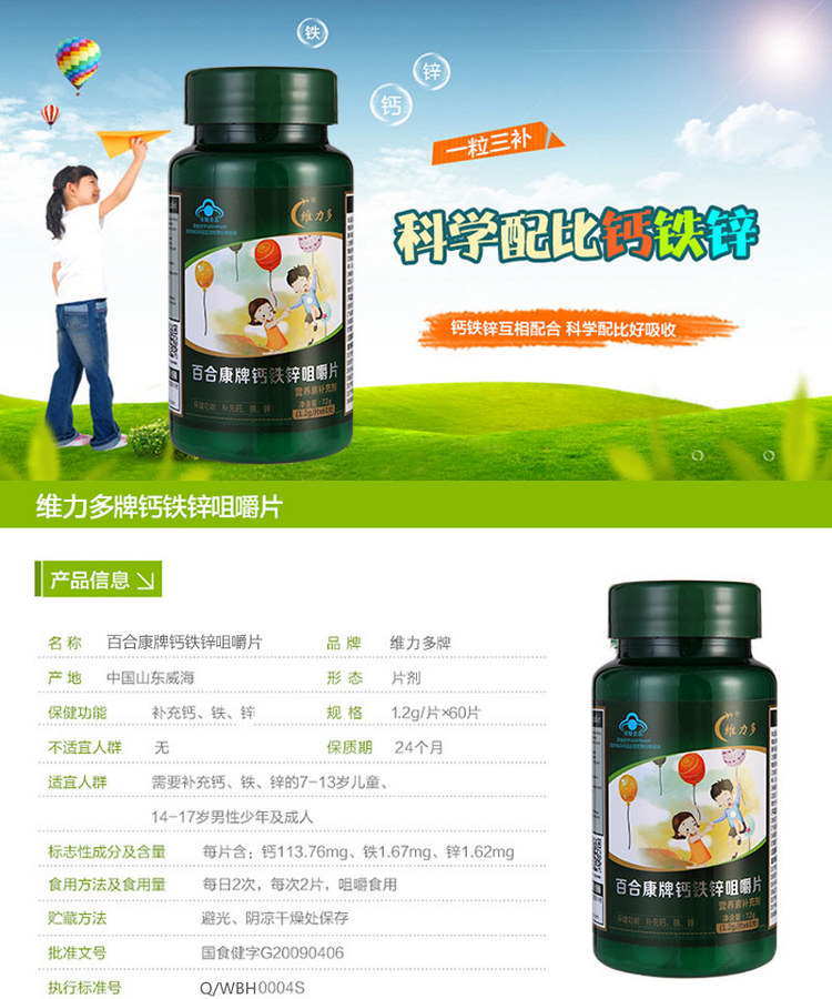 您所在的位置:首页 > 营养保健  > 营养成分 > 钙铁锌  > 【授权商品】维力多钙铁锌咀嚼片 补充钙、铁、锌60片*1200mg