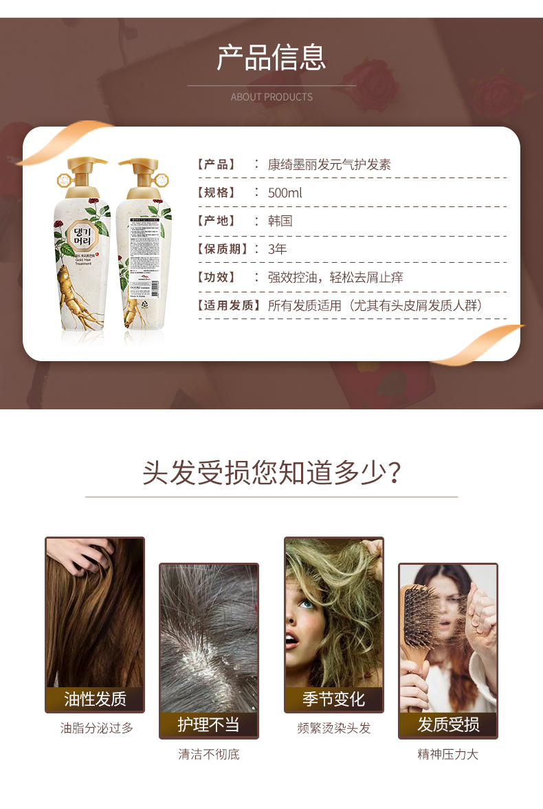 韩国康绮墨丽DAENG GI MEO RI发元气护发素500ml(赠送洗发水中样70ml)