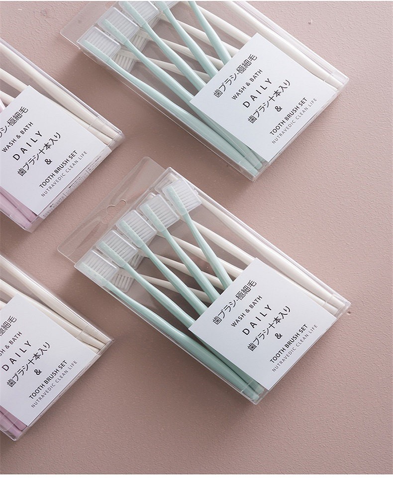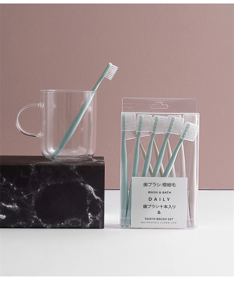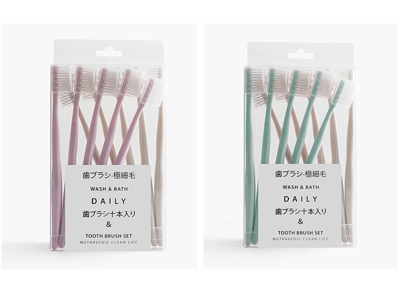 金雅涵 10支装日式马卡龙牙刷带盖保护套纳米女士细软毛软毛组合家庭牙刷 10支装