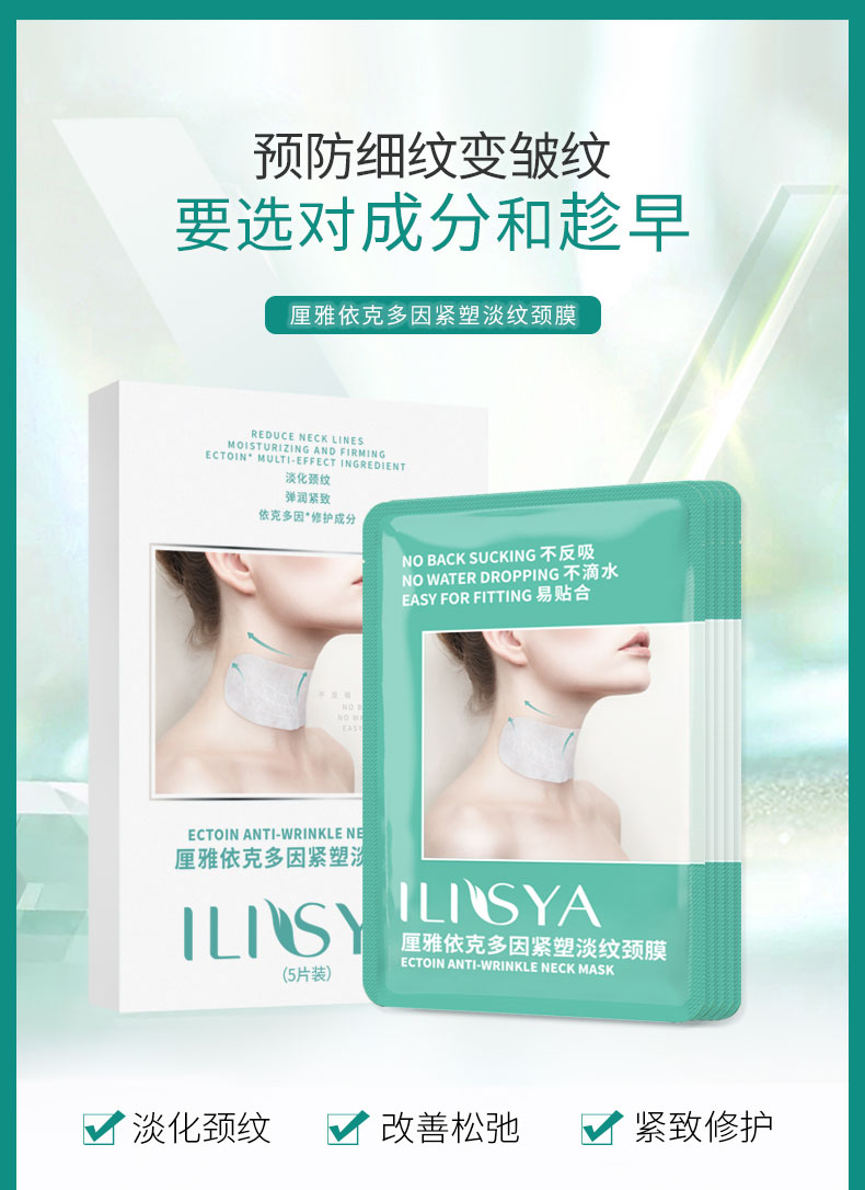 ILISYA厘雅依克多因颈膜贴去淡化颈纹提拉紧致护理黑脖子补水保湿提亮女 5片