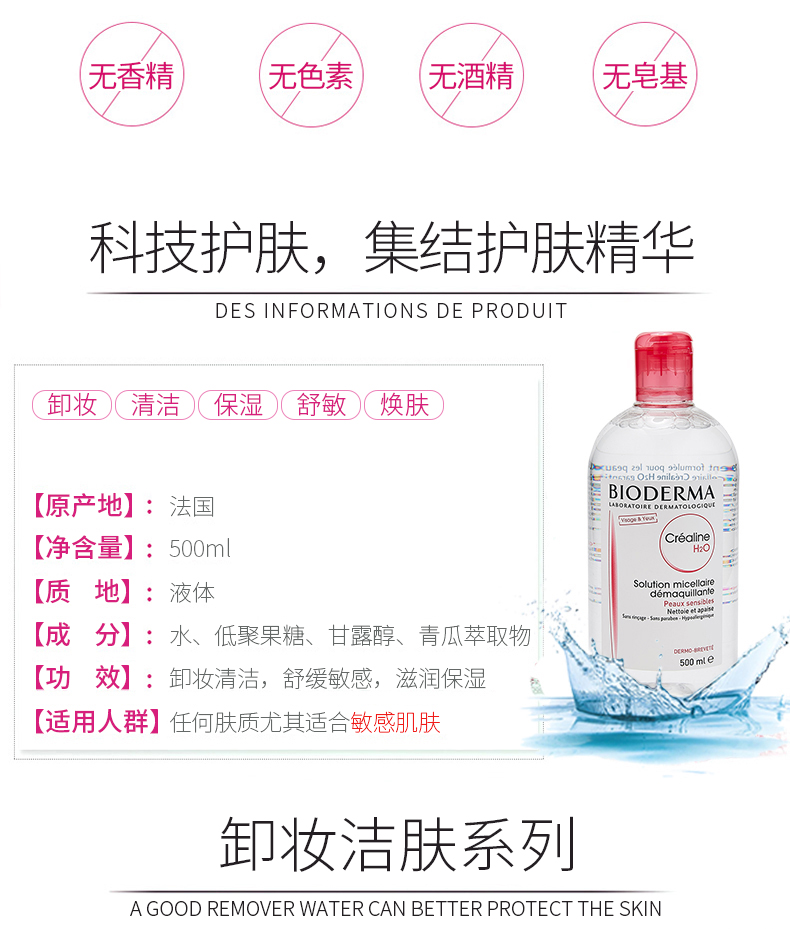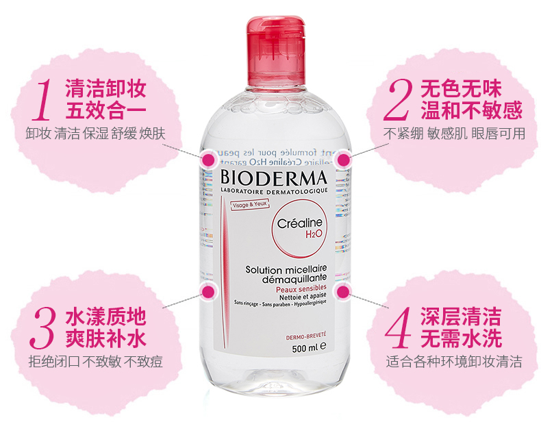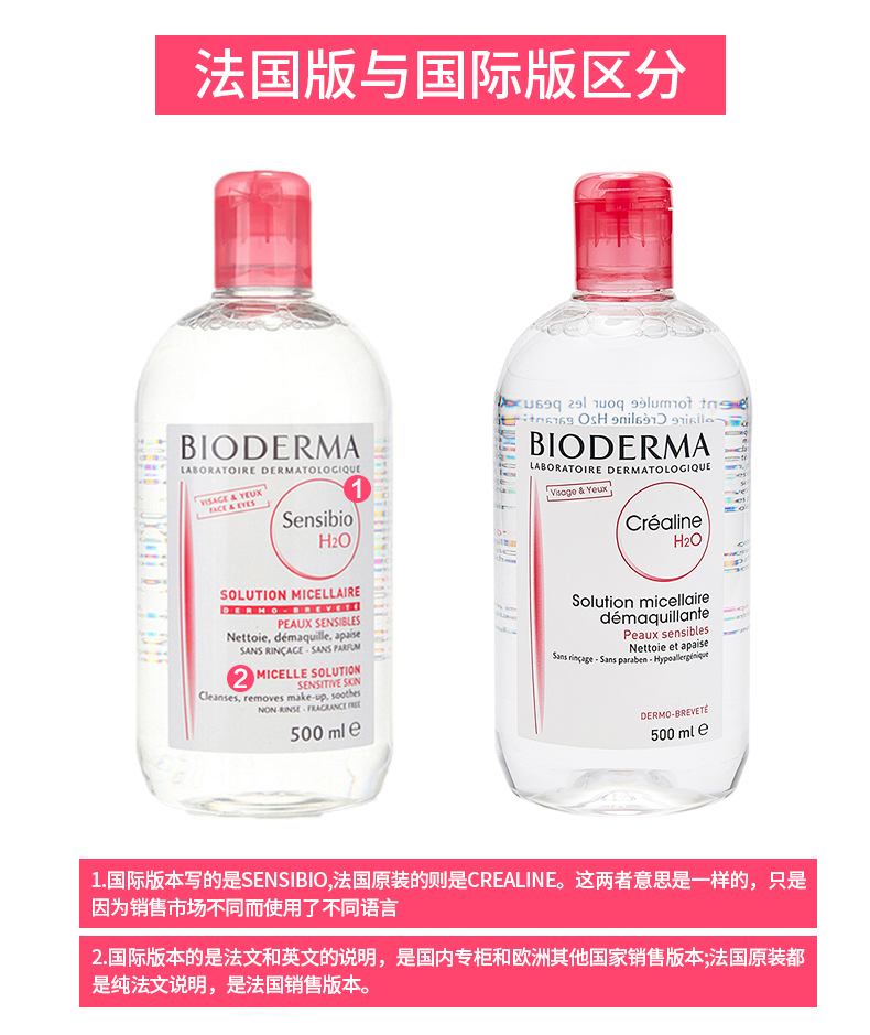 【保税仓】法国版贝德玛卸妆水粉色款500ml(新旧包装随机发)