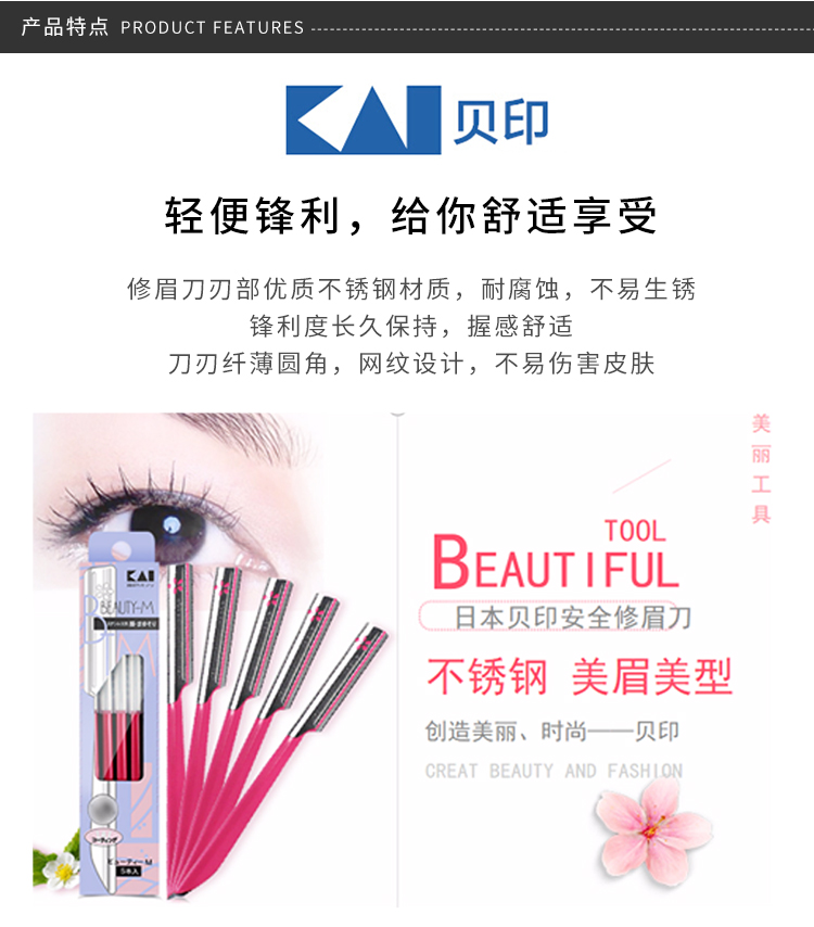 日本贝印修眉刀红色