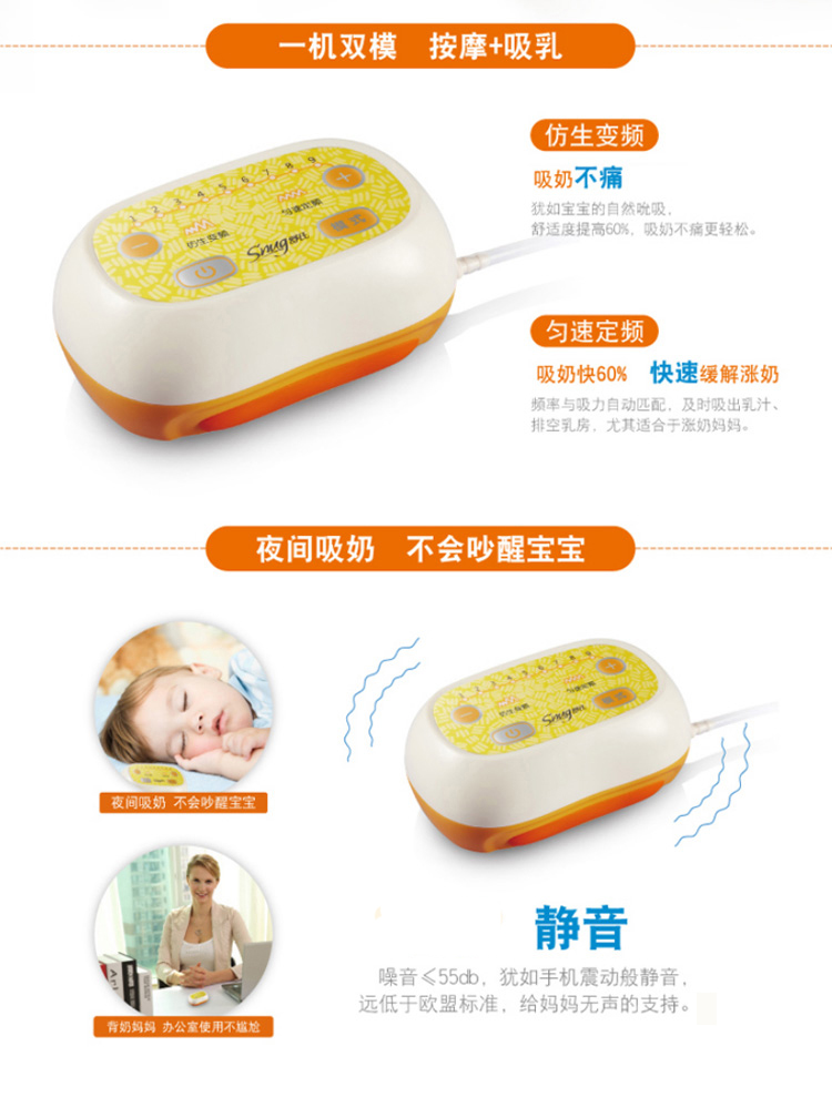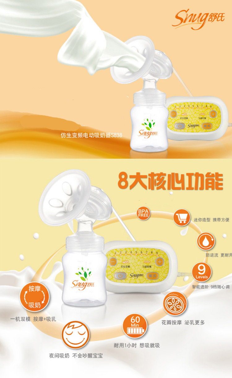 您所在的位置:首页 > 母婴用品  > 喂养用品 > 吸奶器  > 舒氏仿生变频电动吸奶器 S838
