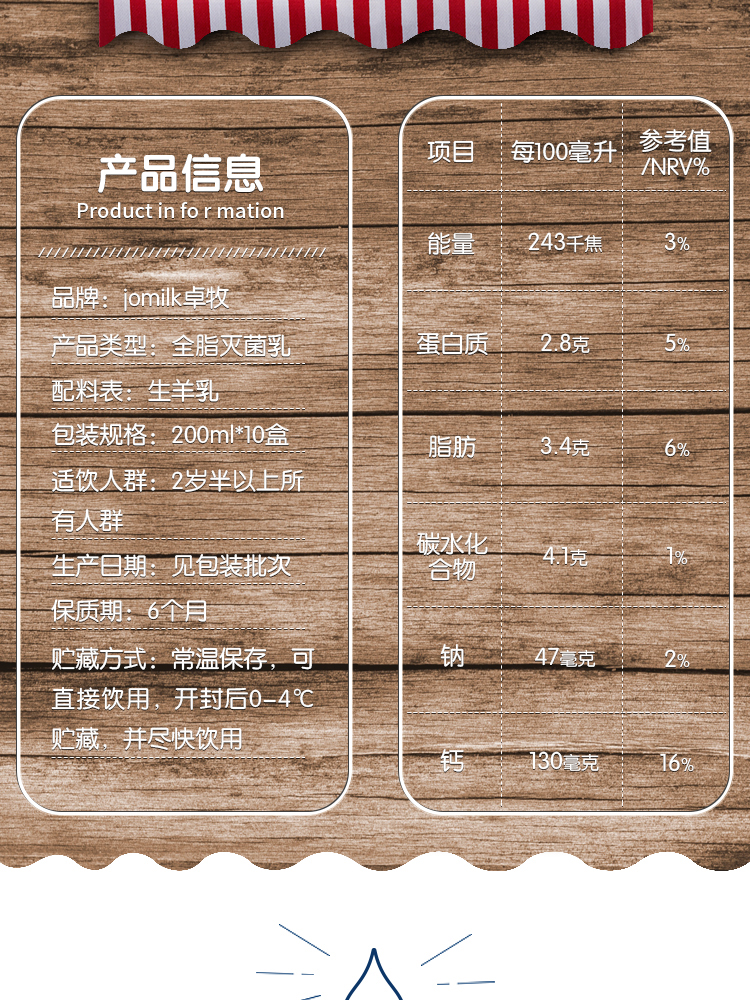 卓牧纯山羊奶新鲜奶源纯羊奶儿童成人孕妇200ml*10盒