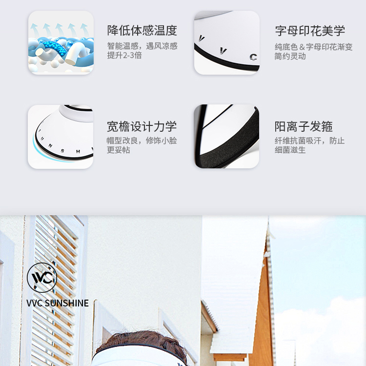 VVC时尚款女神帽空顶帽小字母白
