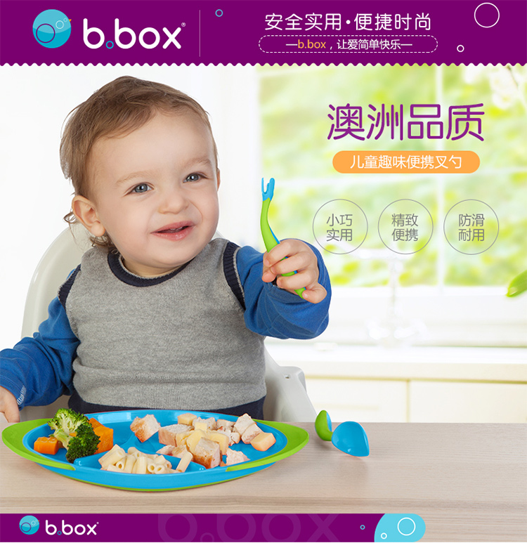 澳洲进口b.box宝宝训练学吃饭弯头叉勺套装紫色款