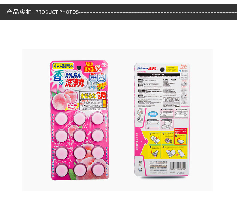 日本小林制药KOBAYASHI下水道除菌除臭丸粉色蜜桃味12粒