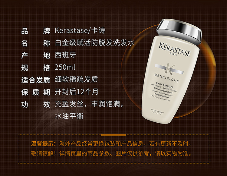 【荷兰直邮】Kérastase卡诗洗发水卡诗白金级赋活防脱发洗发水防脱/浓密/生发250ml