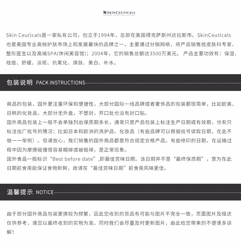 您所在的位置:首页 > 美妆护肤  > 面部护肤 > 面部精华  > 【香港直邮】SKINCEUTICALS/修丽可 果酸焕活复颜精华液 30ML