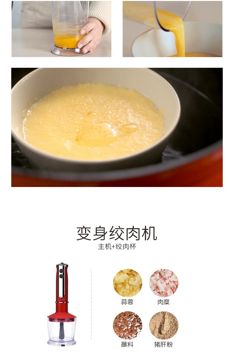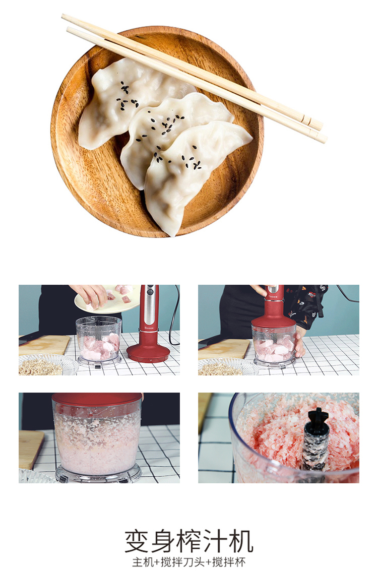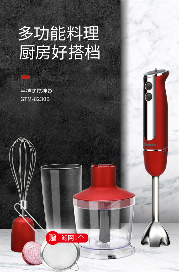 您所在的位置:首页 > 家用电器  > 厨房小电 > 料理机  > HOMEE合米生活料理机家用多功能手持式打蛋器 切菜 研磨 绞肉 榨汁 婴儿辅食机 升级版-魅力红
