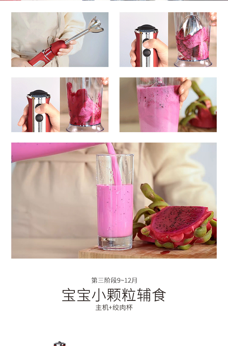 HOMEE合米生活料理机家用多功能手持式打蛋器 切菜 研磨 绞肉 榨汁 婴儿辅食机 升级版-魅力红