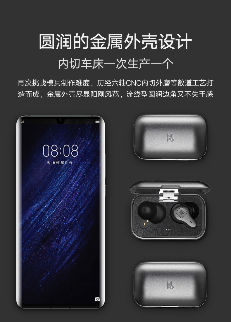 中国 魔浪(morul)动铁真无线蓝牙耳机TWS入耳式运动防水双耳超小迷你隐形耳塞小米苹果安卓华为通 O7 深灰色/双频动铁