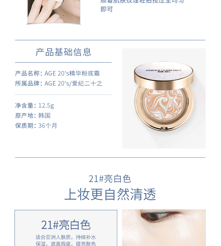 韩国爱敬 爱纪二十之精华粉底霜21号色 12.5g*2